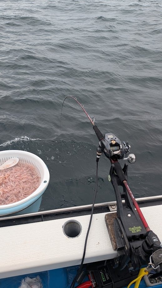北東の風が強く龍飛岬周辺は断念。風を避けられている三厩湾の水深60~70m付近をメインで釣っていきました。鯛ラバでのヒットが多く80gで底取できる状況でしたが船長曰く、前日は底潮の流れが速く200gでやっと底取できたそうなので少量でも200gまでは持っておいた方が良いかと思います。