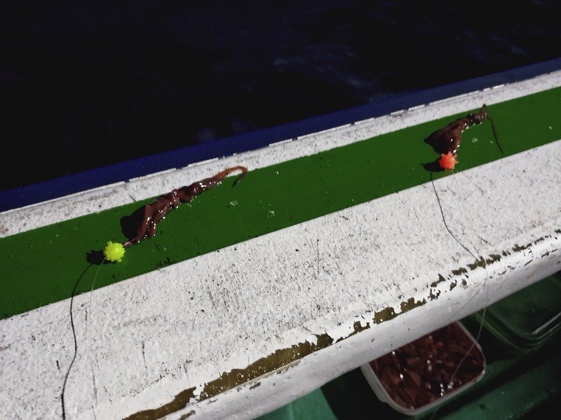 ■ルアー・仕掛け:オモリ)9g 仕掛け)袖1.5号6本針+下針 エサ)紅チーズサシ(寄せでブドウ虫)