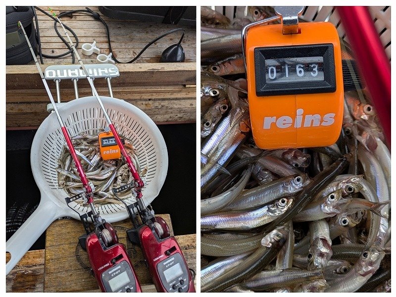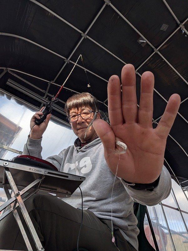 ・大きな群れが入らない時は少しでも魚探にあやしい反応があれば仕掛けをその棚に合わせればポツ・ポツですが拾えます。(とくに釣れていない時ほど怪しいタナでの釣果が数を伸ばす秘訣でしょうか?)