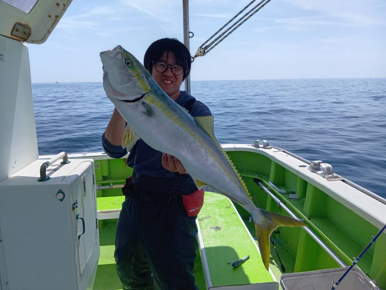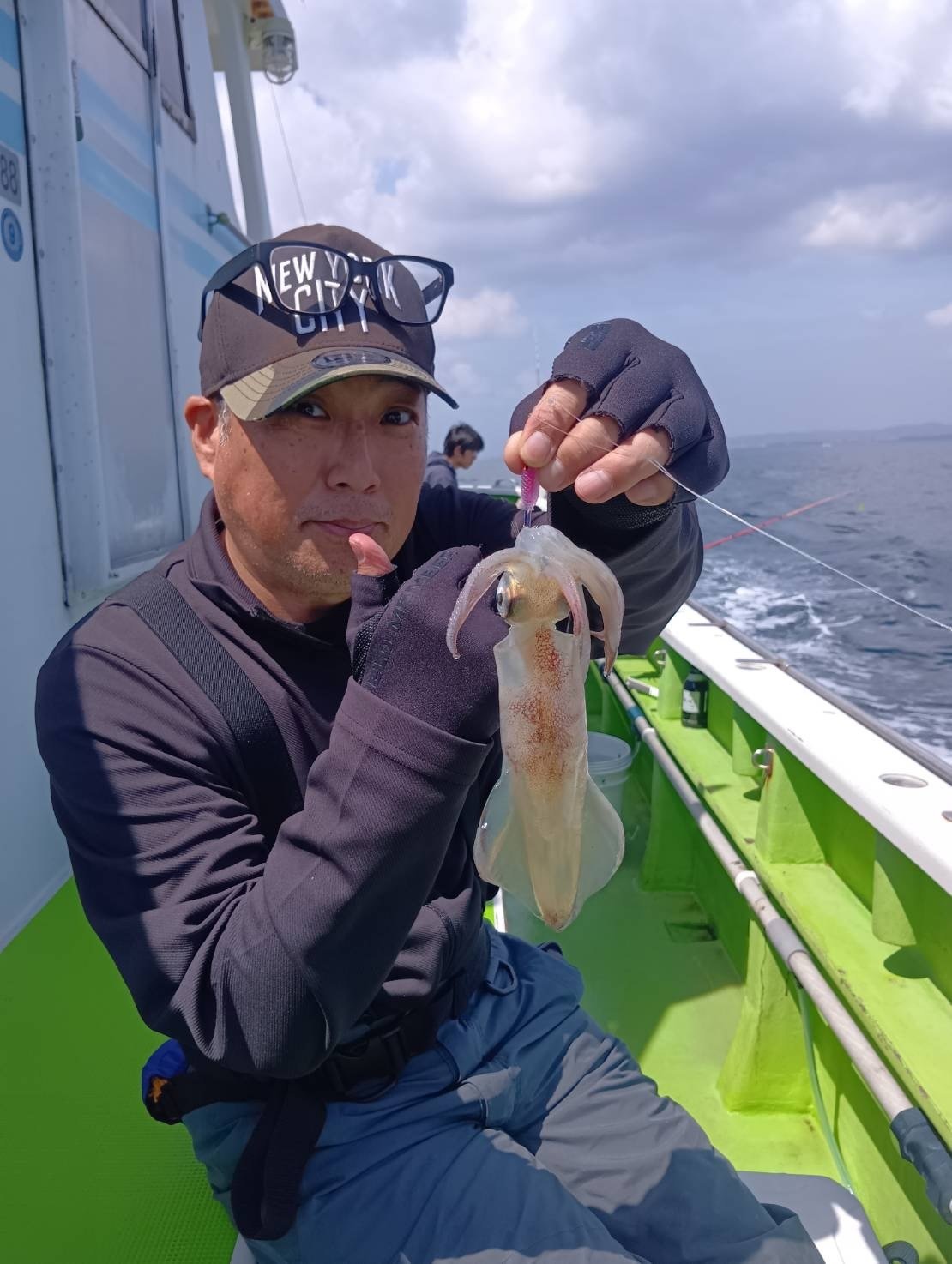 また当日は何杯も巻き上げ最中に襲われてしまう状況も…。船長によると端物でも今はマダイ等が喰っているとの事。実際、同船スタッフがムギイカを泳がせるとでっぷりとしたワラサをゲット!仕立船なら楽しめますのでお勧めです!