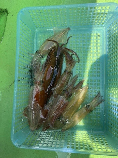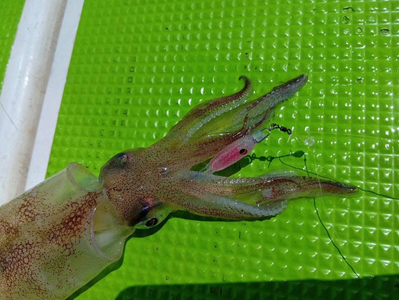 小網代港山星丸さんより久々に城ヶ島周りのマルイカに行きました。数日前より釣果がダダ下がりかなり覚悟の上での出船です。開始から2時間ほどは着ノリでポツポツ掛かる程度、ムギもたまに乗ってきました。潮がかなり速いので直結から直ブラにすぐ変更して対応、何とか数杯をゲット。その後、やや潮も落ち着いたところで直結へ。ようやく時合が来たかムギ交じりで乗り始めます。マル・ムギとも上から1番、2番に乗ることが多く、同船スタッフは一荷もありました。スッテはダイワイルミス・グリピンゼブラ、ジョーカーマルイカネオンスリム40S-09,S-11など、アピール強めのスッテに分がありました。