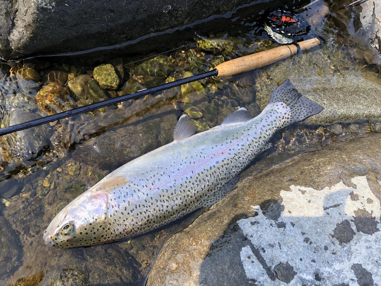 久々に釣果情報に登場のスタッフ北野です。我が家からかなり近くにあるシルフさんに後輩の江村君とおじゃまして来ました。ちょっと愚痴らせてください。私より後から来たのに先に釣る江村、一番小さい鱒を釣ったのは江村、私より大きな鱒を釣ったのも江村、私よりたくさん釣ったのも江村、クローズ迄の1日券で釣っていたのも江村・・。イイところ全くなくない?と思われる所なのですが、動画を撮影している時に一発で釣ったのはワ・タ・シ!江村君も動画チャレンジしたのですがテイク幾つまでいったかな~?w動画の模様は当店のインスタでご確認を♪ルアーローテをしっかり行うことでエリア初心者の私でも楽しく遊べましたよ♪GWの安近短釣り場にお出かけになってみては如何でしょう?