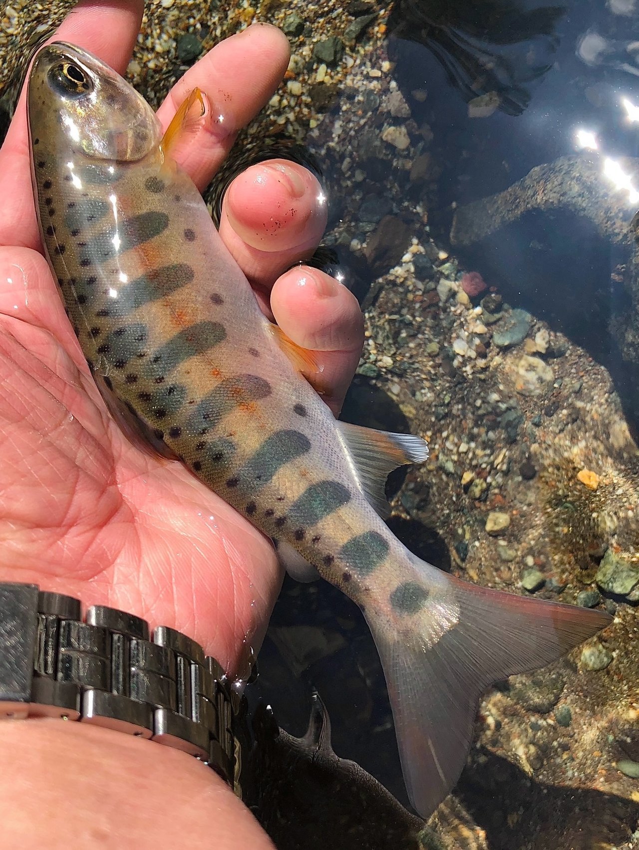 道志川のあとはプレイブ狙いで桂川へ。着いてしばらくしたらポツリとライズがあり、投げたらあっさり釣れてちゃった。