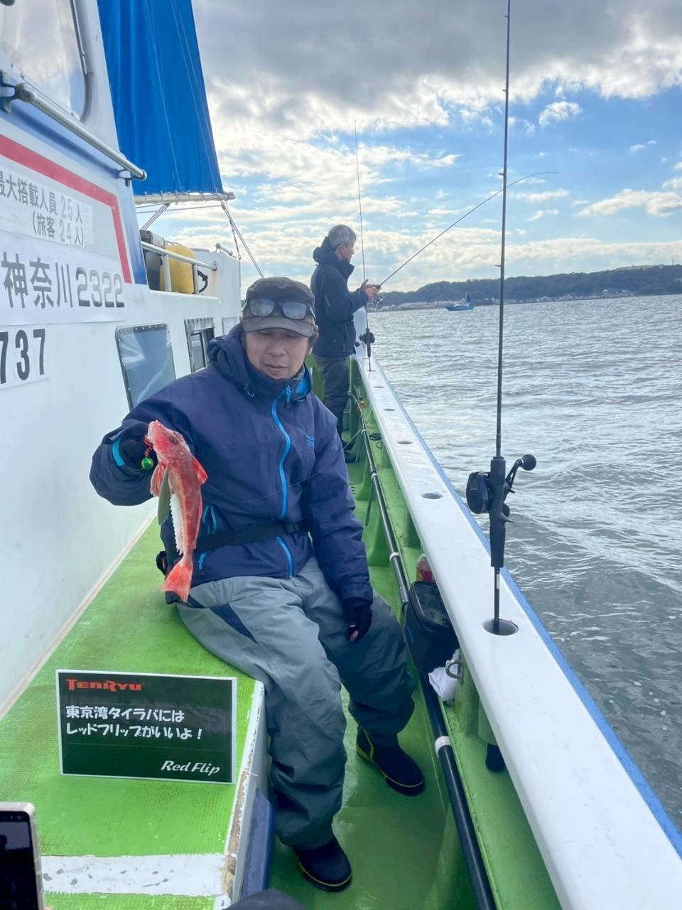 天龍の人気タイラバロッド「レッドフリップ」を使用した実釣会に参加してきました。走水港政信丸さんに行ってきました。開始早々に隣にて1.3kのマダイを上げたので期待を抱きながらタイラバを巻き上げてくるとマダイらしきアタリ・引きが有り巻き上げてきたが残り3mでハズレGETならず。そこからミサが付いたのかアタリも無く残り30分で待望のアタリが来ましたが本命のタイではなく外道で本日の釣果終了です。レッドフリップロッドはしなやかな曲がりでやり取りもしやすいロッドでした。天龍さんより各種取り寄せが出来ますのでご来店お持ちしております。