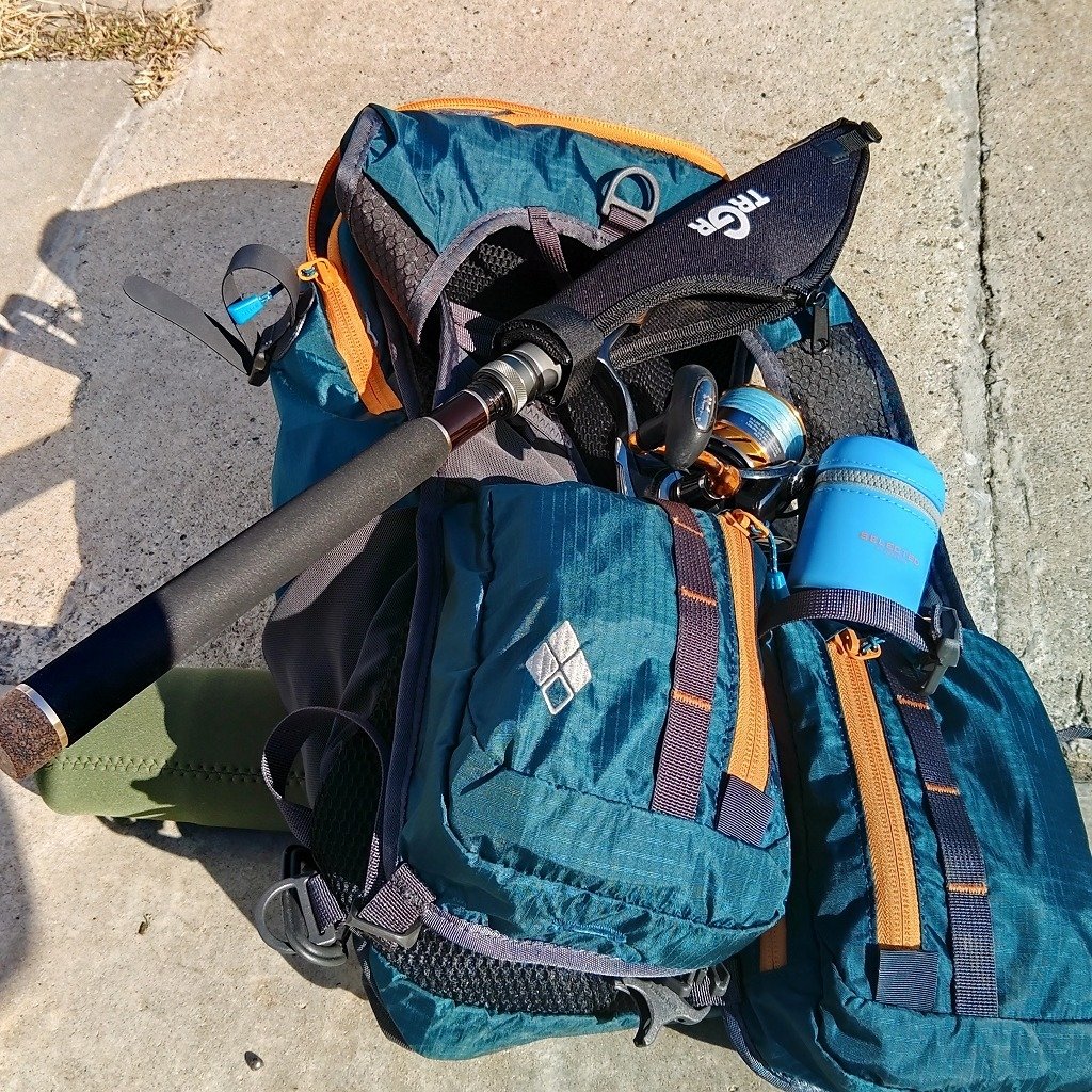 ■ロッド:モバイル(振出)8FT ■リール:2500番 ■ライン:PE+リーダー ■ルアー:バイブ、鉄板、他シーバスルアー各種