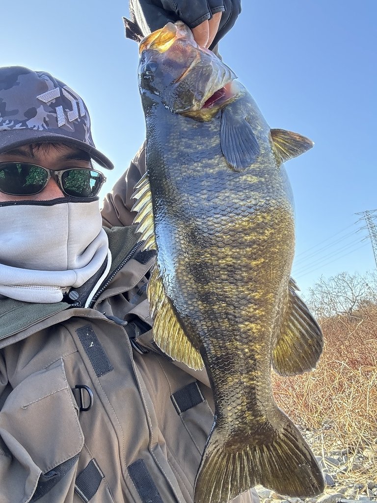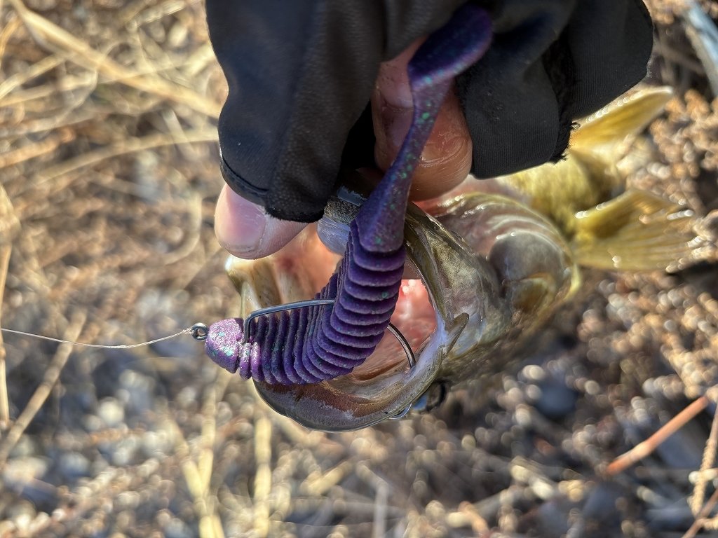 ボトムゆっくり巻きで何匹か拾うも寒さで手がかじかんでやりきれない。