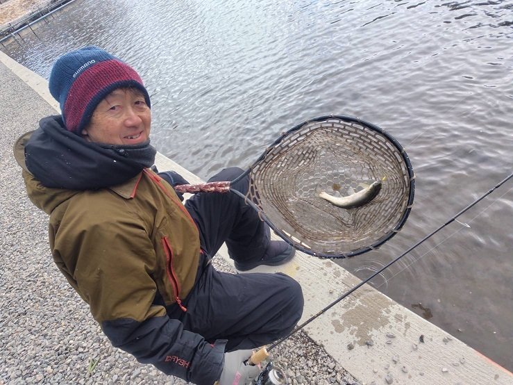 風ビュービューの予報でワカサギをあきらめ郡山の管釣り「ウェルカムオーパさん」へ。