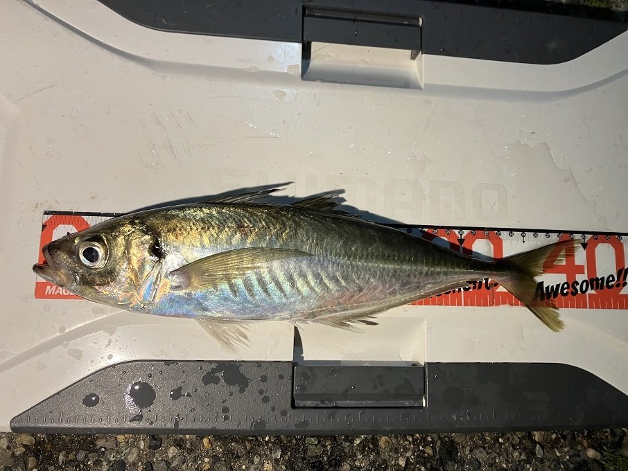 そろそろ外海でもアジが釣れ出す頃だと思い行ってきました。明るい内に何か所かポイントをチェックして川からの濁りが少ないエリアを選択。期待した夕マヅメにはアジの回遊なく、日が暮れてからしばらくも「無」まだ早かったかと諦めかけたところから「コンッ!」と小気味よいアタリ!取り込んでみると良型のアジ♪その後もポンポンっと調子よく釣れましたが、波風強くなり早めに撤収としました。