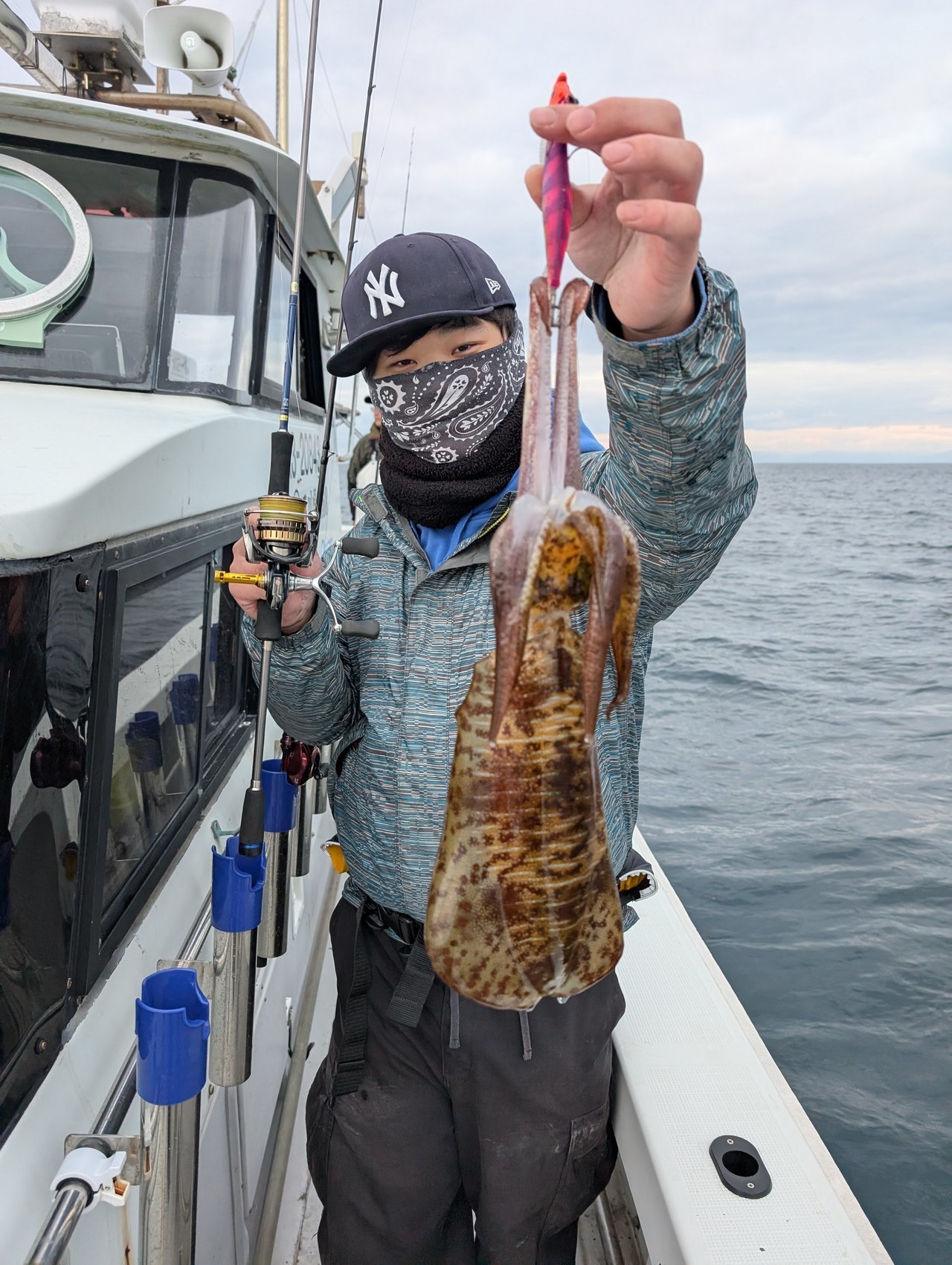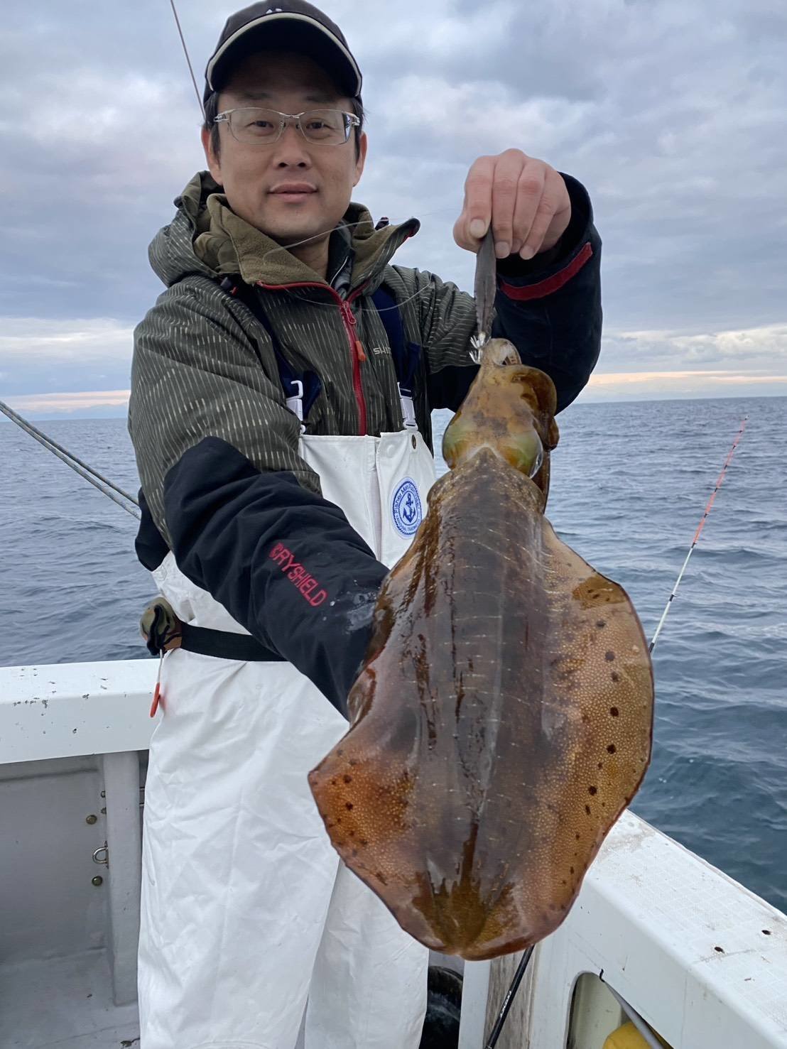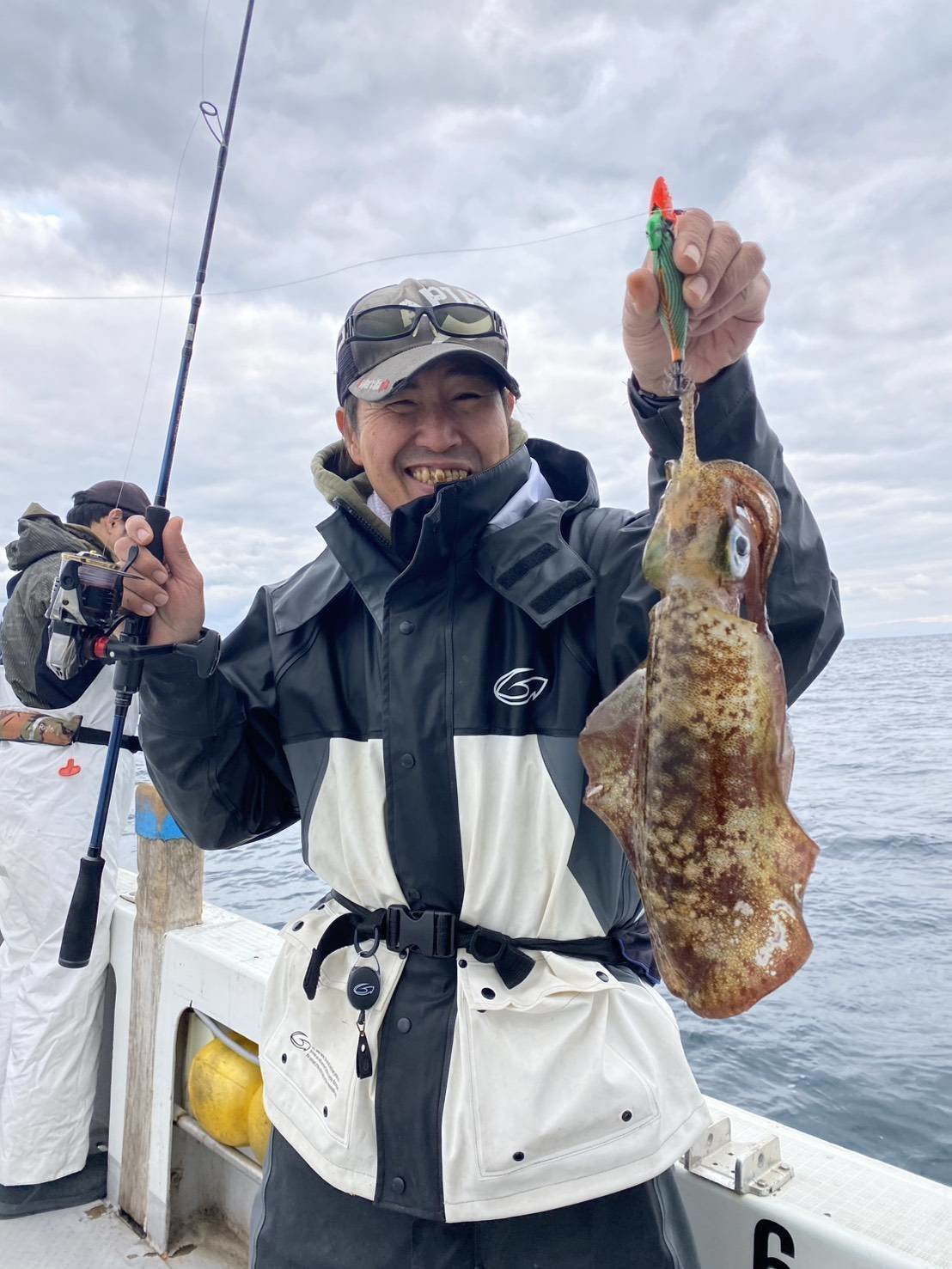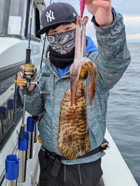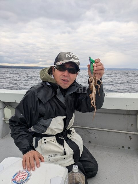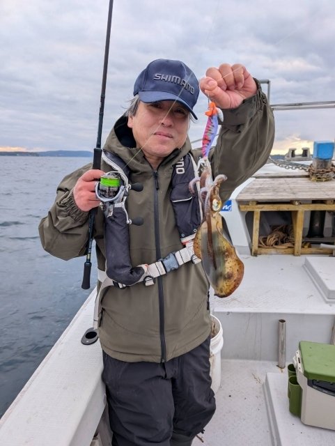 開始早々フォール中のエギにヒット!早速イカをキャッチ。隣のスタッフ坂本はキロアップを含めて10杯、船中全員安打を出す事ができました。シーズン的には終盤ですがまだまだティップランも楽しめそうですね!