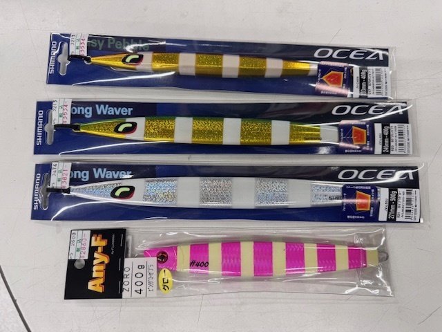■ロッド:ディープライナー ロジカル60 #4 ■リール:スタジオオーシャンマーク BHL50Pw/R S2T ■ライン:PE 1.5号 ■リーダー:フロロ 6号 ■ルアー:シマノ イージーぺブル400g ロングウエーバー 400g・500g フジワラ ZORO 400g ■フック:オーナー ジガーライトホールド5/0 自作ツインアシスト