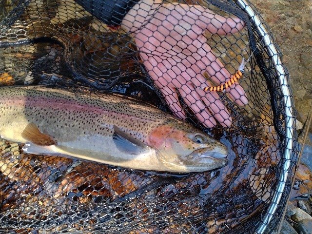 やはり放流ニジマスなのでエリアルアーが強いです。