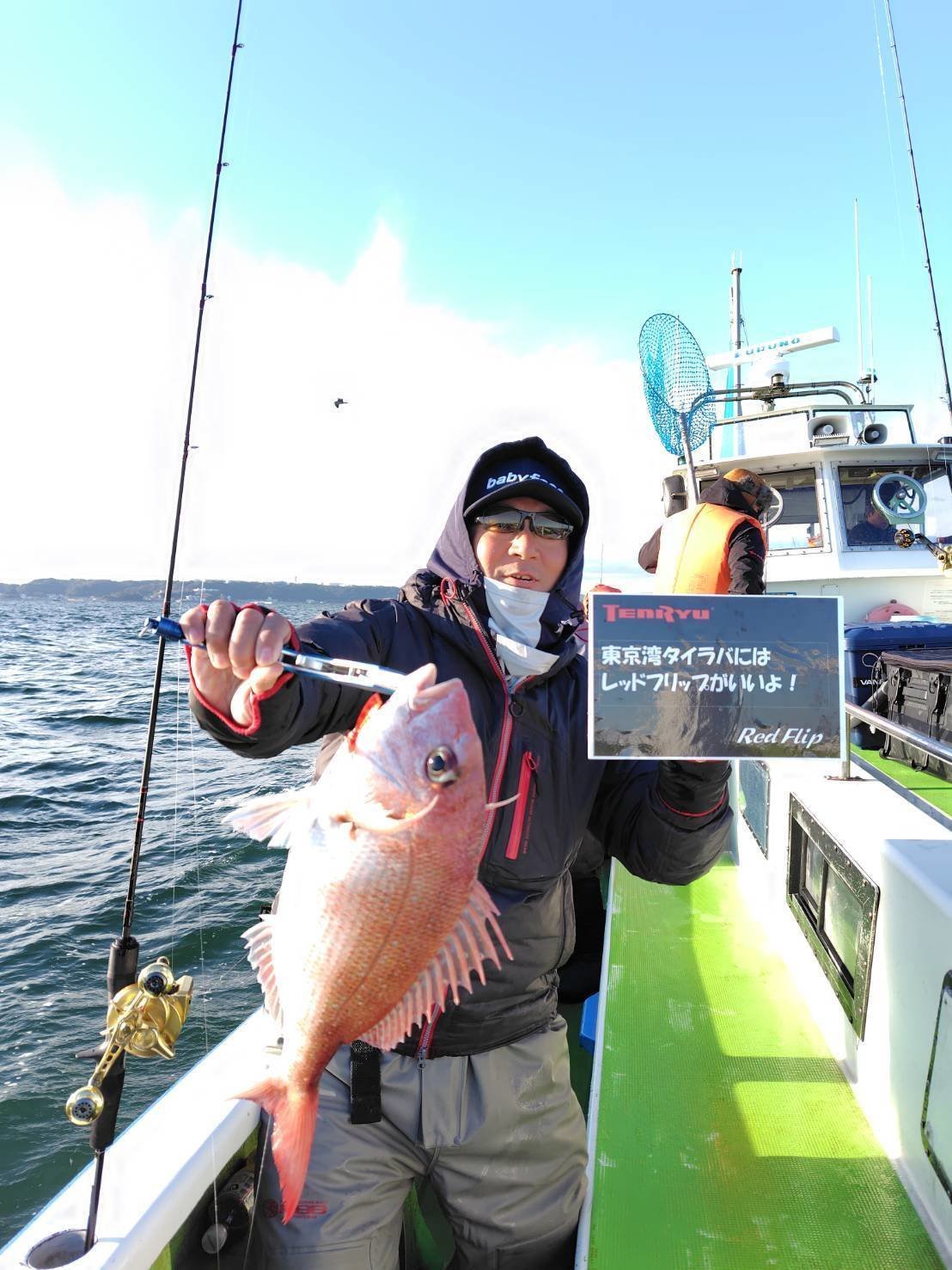 はい、連チャンタイラバ釣行でした。勉強熱心なワタクシ今回は天龍の人気タイラバロッド「レッドフリップ」を使用した実釣会に参加してきました。今回お世話になったのは走水港政信丸さん(なかなか予約の取れない人気の船宿さんです)ポイントは前日同様浦賀水道水深50m前後。それでも走水港からは航程15分程です。昨日の教訓を活かして強波動のネクタイで攻めると開始30分程で早くもアタリ!上がってきたのは1㌔ほどの待望の本命でした~使用したのは東京湾タイラバにジャストサイズのレッドフリップ642UL。チューブラトップながらソリッドのようなしなやかな曲がりで安心してやり取りできました!早々に1枚取れたので今日はイージーかも・・なんて甘い考えが芽生えましたがそうは上手くいくはずもなくその後は沈黙・・・沈黙の巻き巻きタイムと時々甘いもののもぐもぐタイムが続きますw
