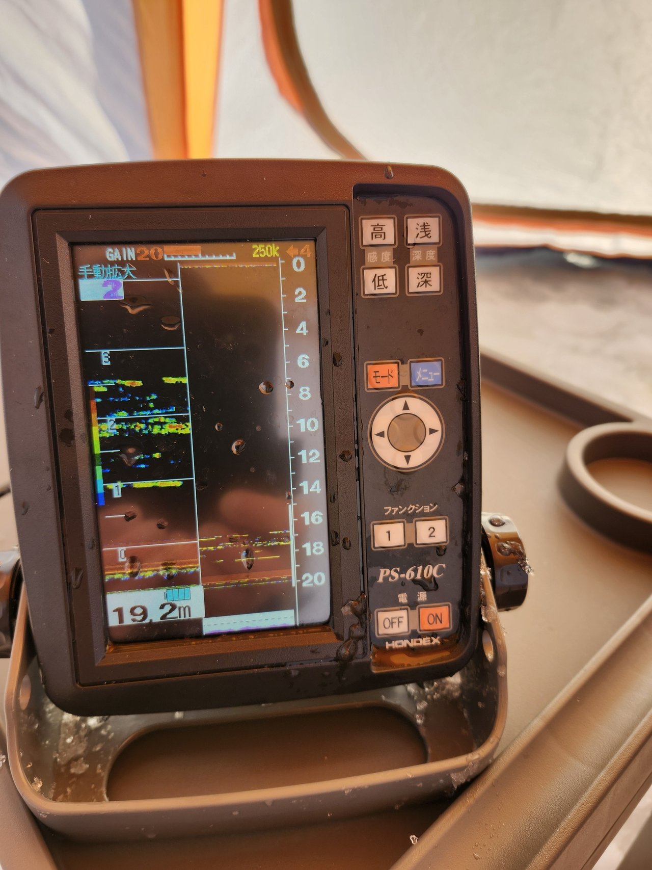 比較的深場(18m前後)が好調との事前情報により水深のあるエリアを中心にポイント探し