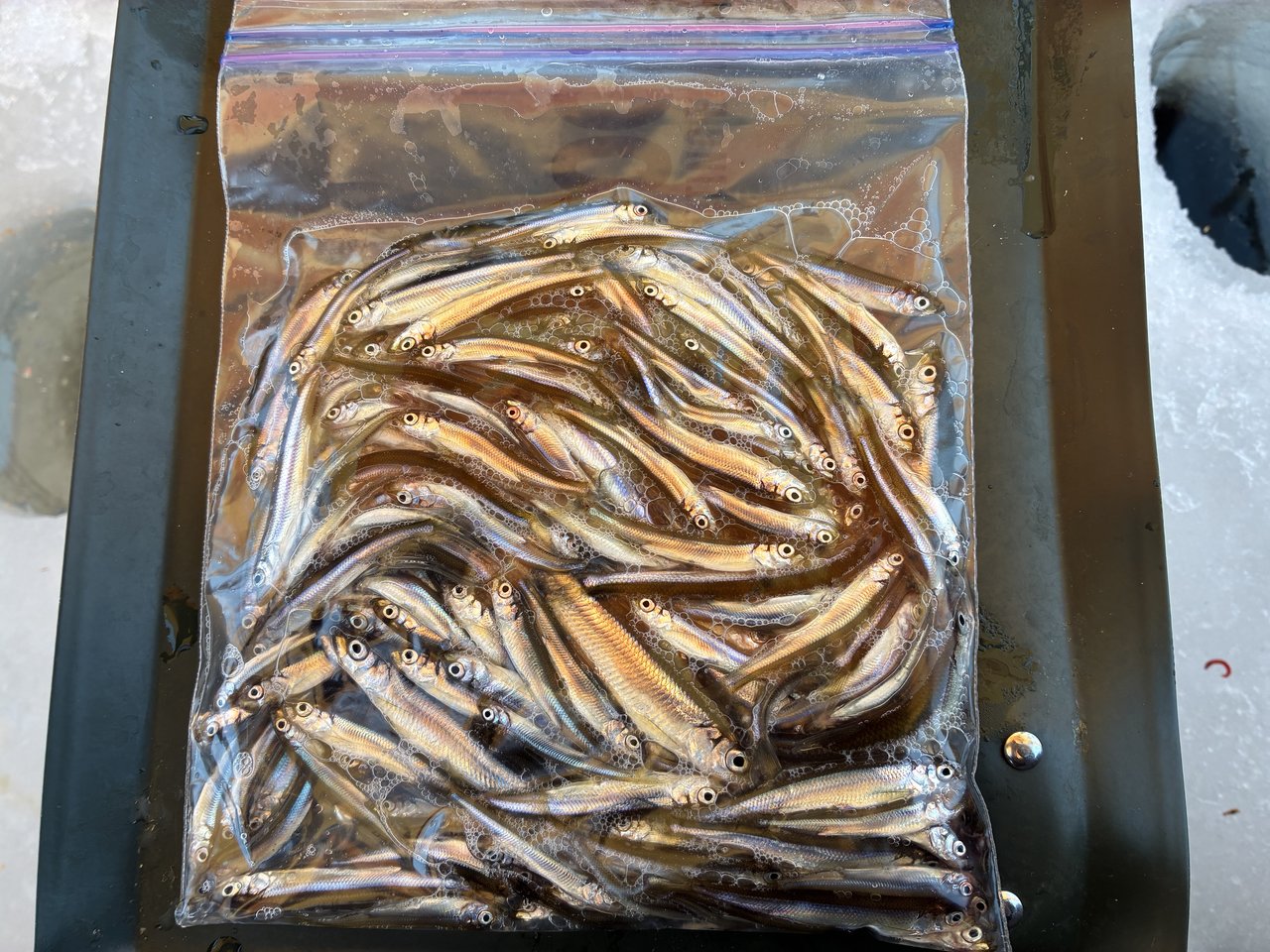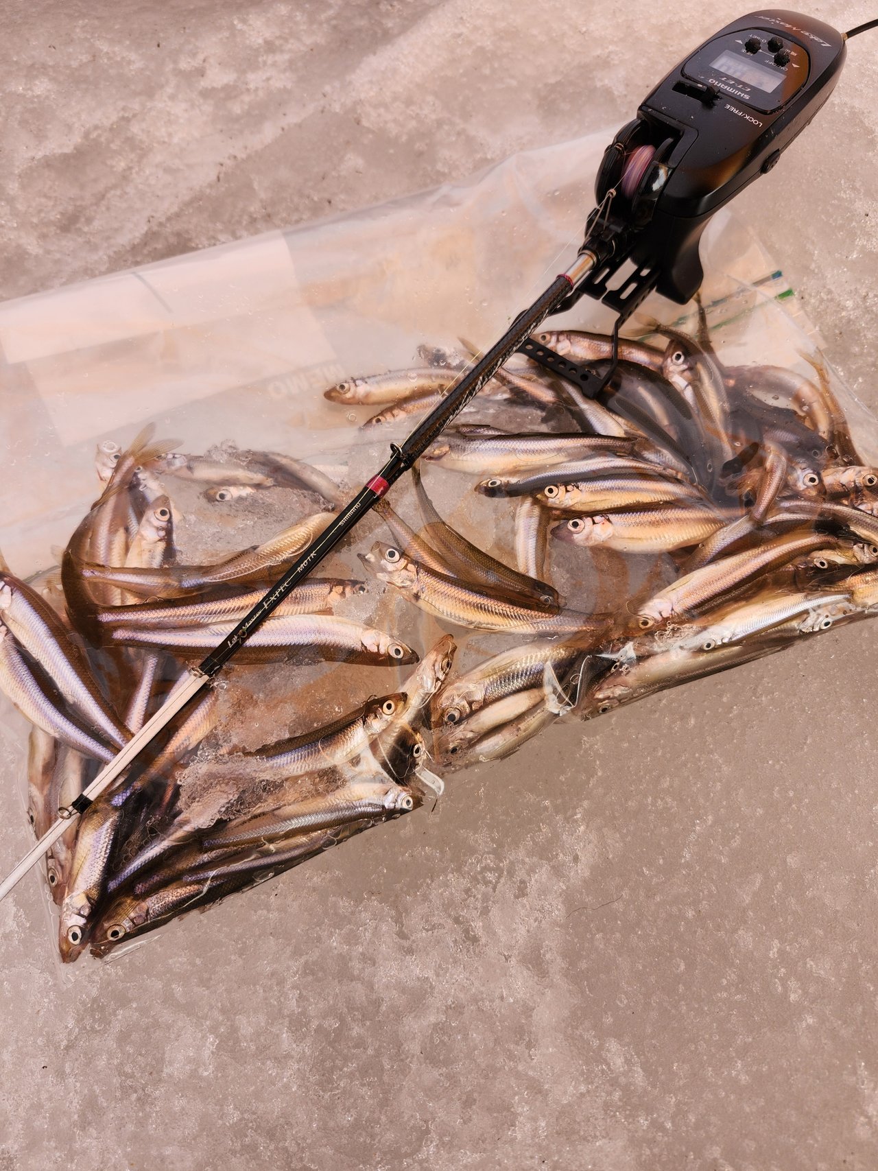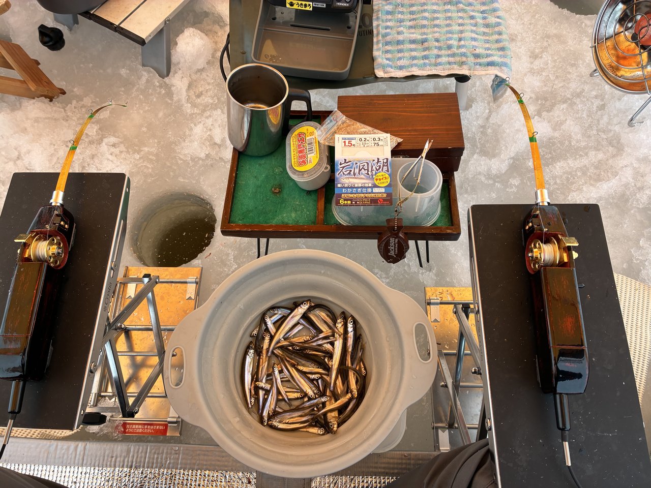 晴天の天候が影響しているのか?お昼以降はペースダウンとなりましたが終わりまで良型ワカサギがコンスタントに釣れてくれました♪