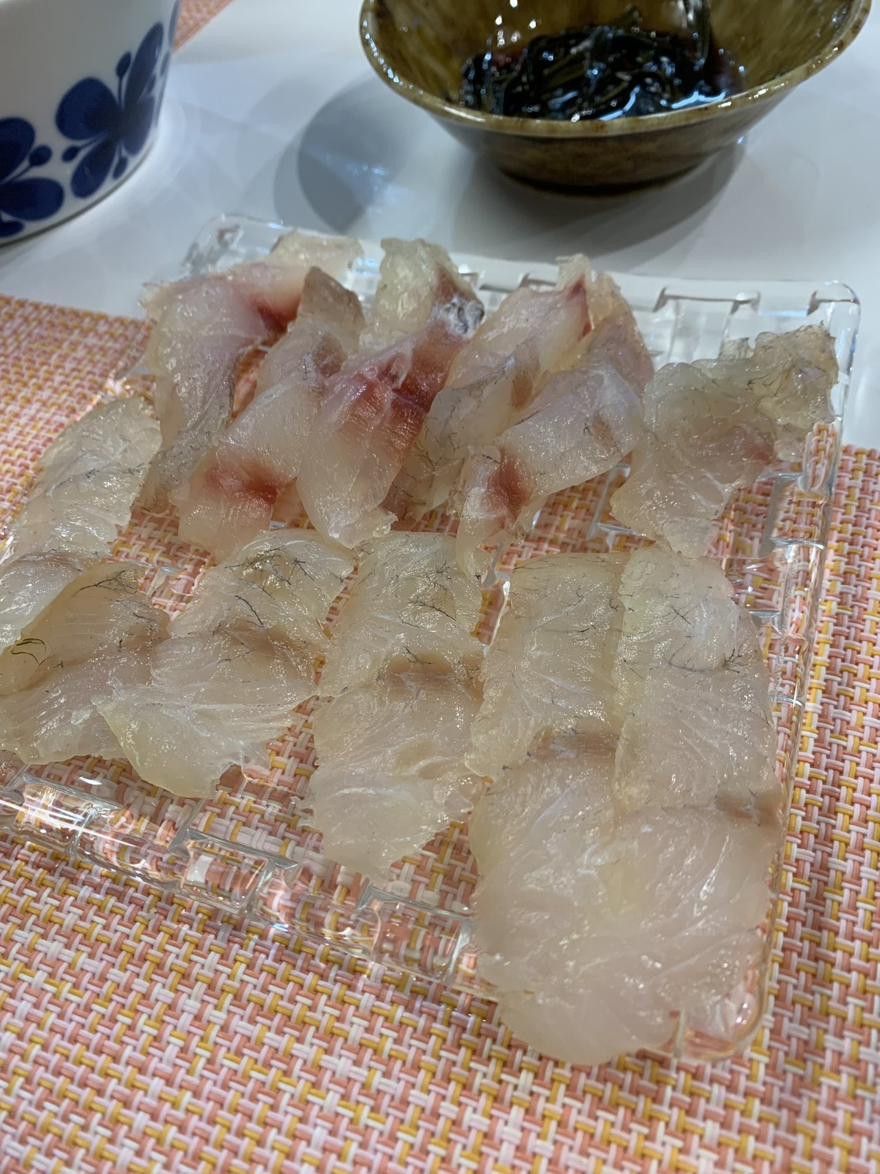さばいて、こぶ締めにし、もう一匹は初挑戦の鯛めしにしました。