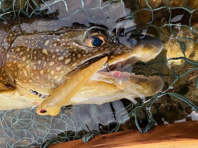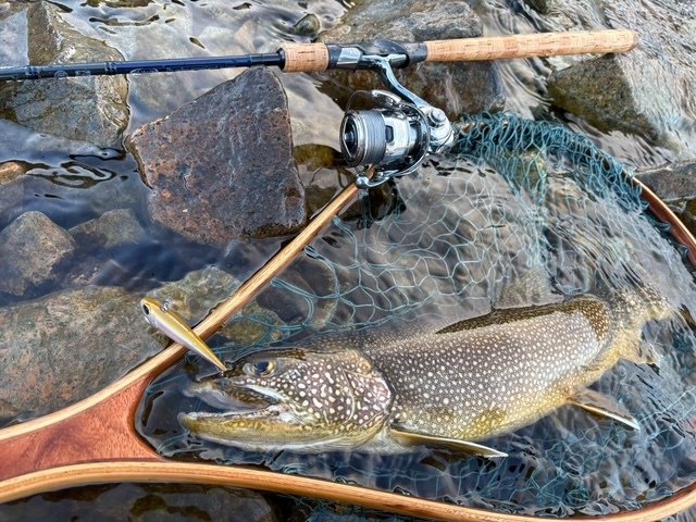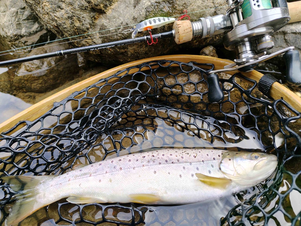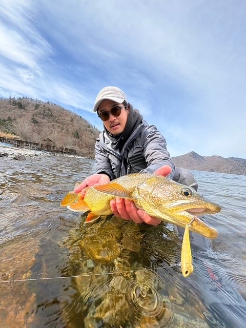 まだまだ活発にルアーを追う水温ではない為、クロス~ダウンクロスがメインの釣り方となります。水流の強さにスプーンを合わせてじっくり見せるパターンが好調。堰堤下のポイントでは、ミノーの移動距離を抑えたタテのトゥイッチが効きました。