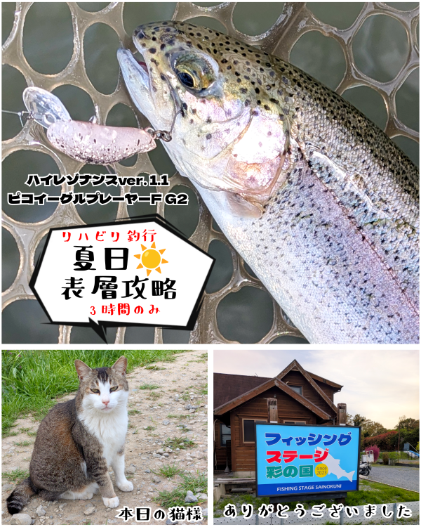 フィッシングステージ彩の国。テニス肘(上腕骨外側上顆炎)を再発して以来のリハビリ釣行。スプーンで始めるも難易度が高く即クランク投入。トップを中心に刻みながら時々ボトムで拾う、そんな3時間でした。詳しくはスタッフ江野嶋まで