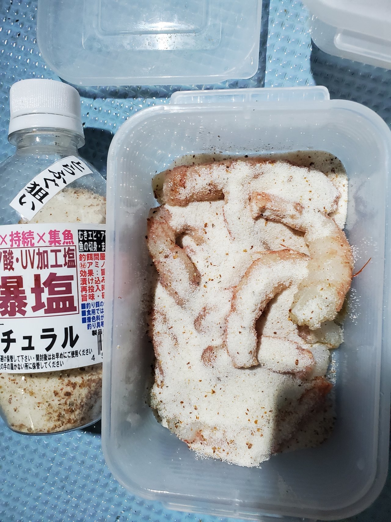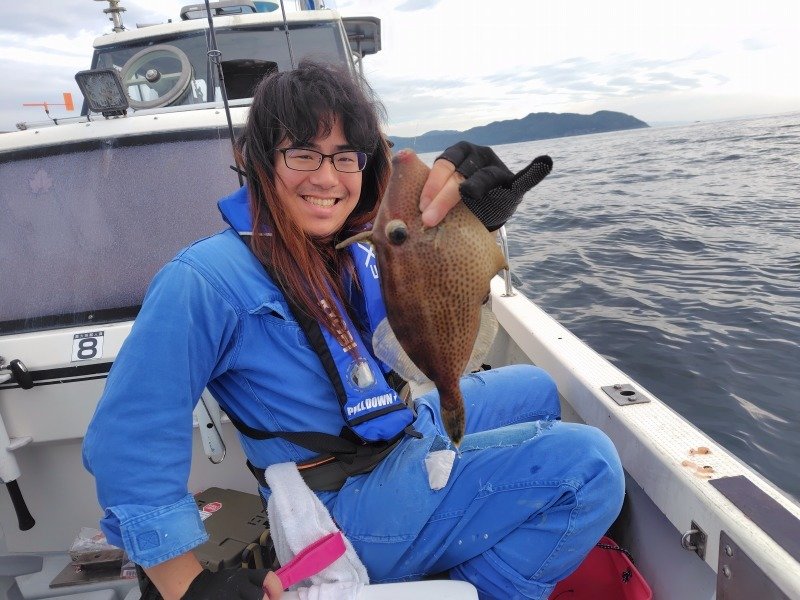 当日はそんなことは知らぬ宮川は何んとかトラフグをゲットしようとエサのエビに『爆塩』をまぶしながら出船を待ちます。ポイントまでは約20分ほどの冨浦沖へ到着。水深40m~50m前後オモリは40号を使用。数投で剣崎沖へと移動し数投したところで、デットスローを試すと待望のアタリが♪ですがアタリは消えてしまいお隣の釣友の竿が曲がっております、釣友が船中1匹目を見事ゲット♪その後もデットスローや巻き落としの釣りを行い何とか2匹のトラフグをゲットできました。詳しくはスタッフ宮川まで問い合わせください