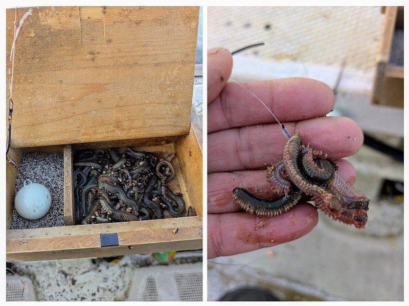 ■ルアー・仕掛け:仕掛け)片天秤3本針14号 エサ)青イソメ オモリ)今回は40号