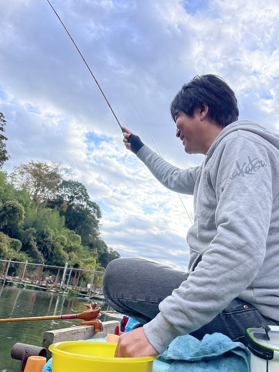 最初は座学とエサの作り方やバラケ方を丁寧に教わり、いざ釣り場へ。