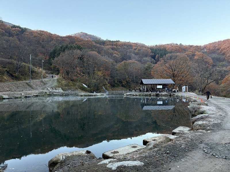 下流のポイントへエントリーしてみますが川は減水していて水は澄み気味で流れは強弱しますが基本緩め。一通り探って反応が薄いのでポイントを変えてみますがこちらでもスタッフ片岡にショートバイトが出るのみ。