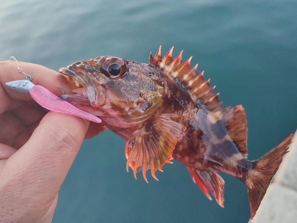 その後はしばし休憩して、明け方はカサゴのライトワインドで連発を楽しみました。
