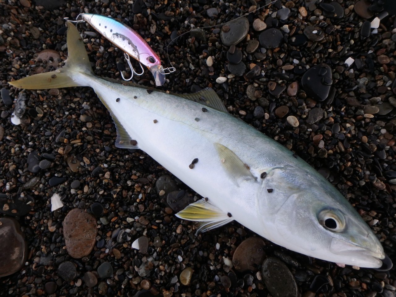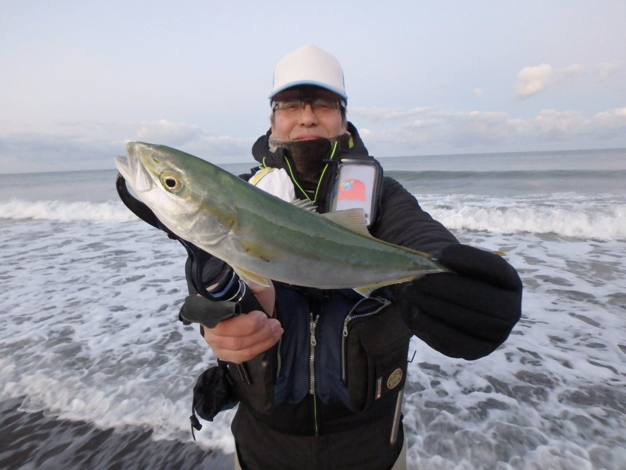 まずは大野にヒット、最近のサーフの定番魚ワカシ、続いて五味にもワカシ3連発