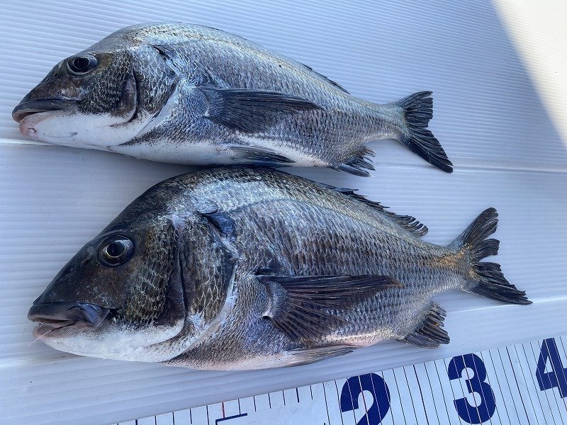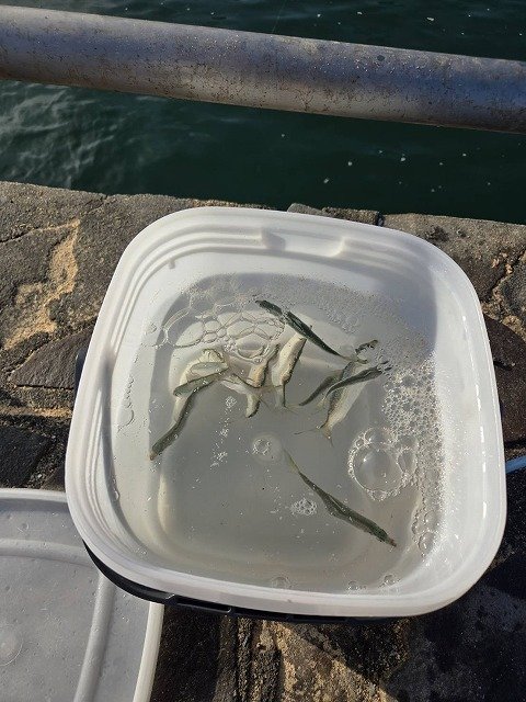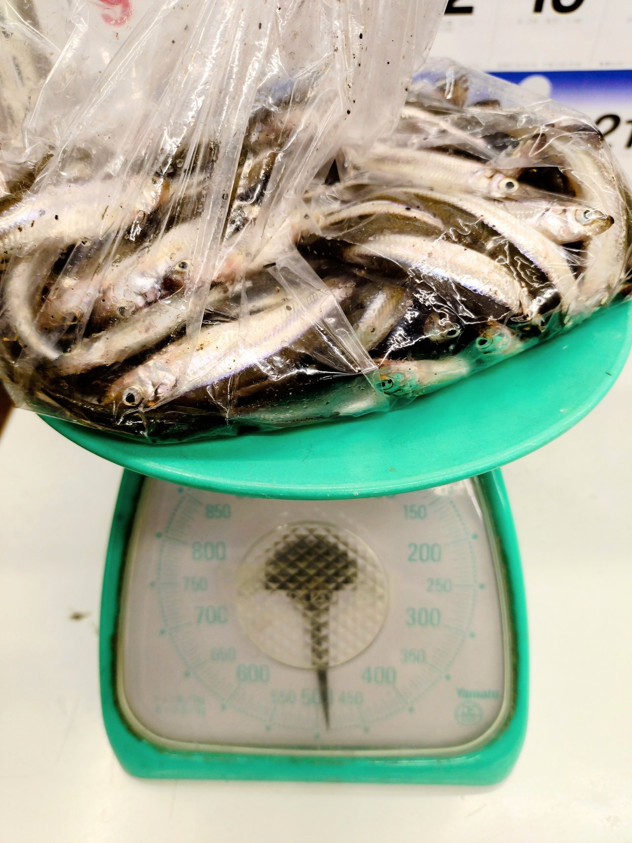 一つ目のポイントでは朝一のラッシュを期待しましたが、釣果が思ったように出ず。24m程の水深でしたが3㎝~7㎝クラスの当歳魚混じりの釣りでした。