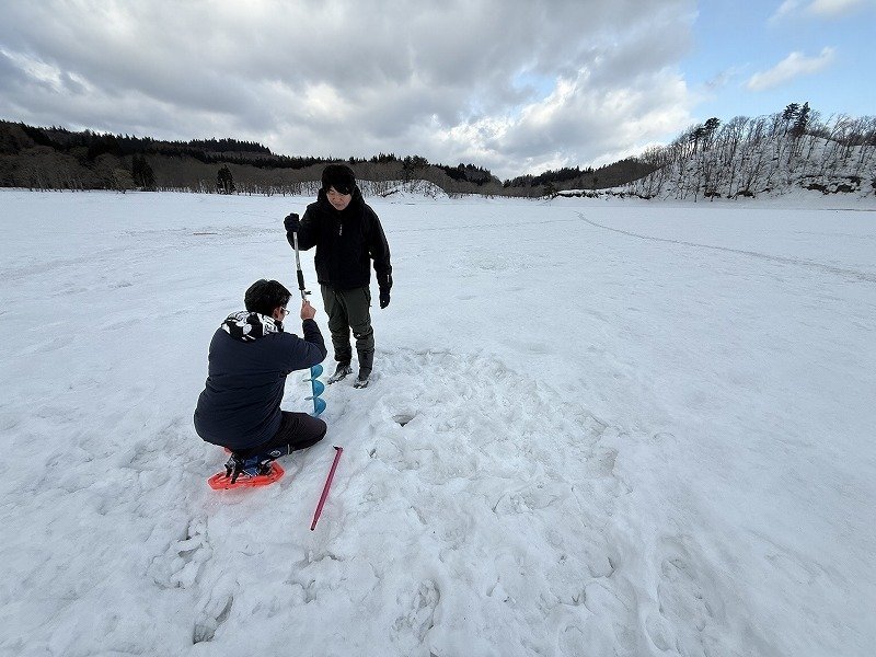 車から歩くこと約20分、まだまだ楽しめそうな位しっかり氷は張っている様子。