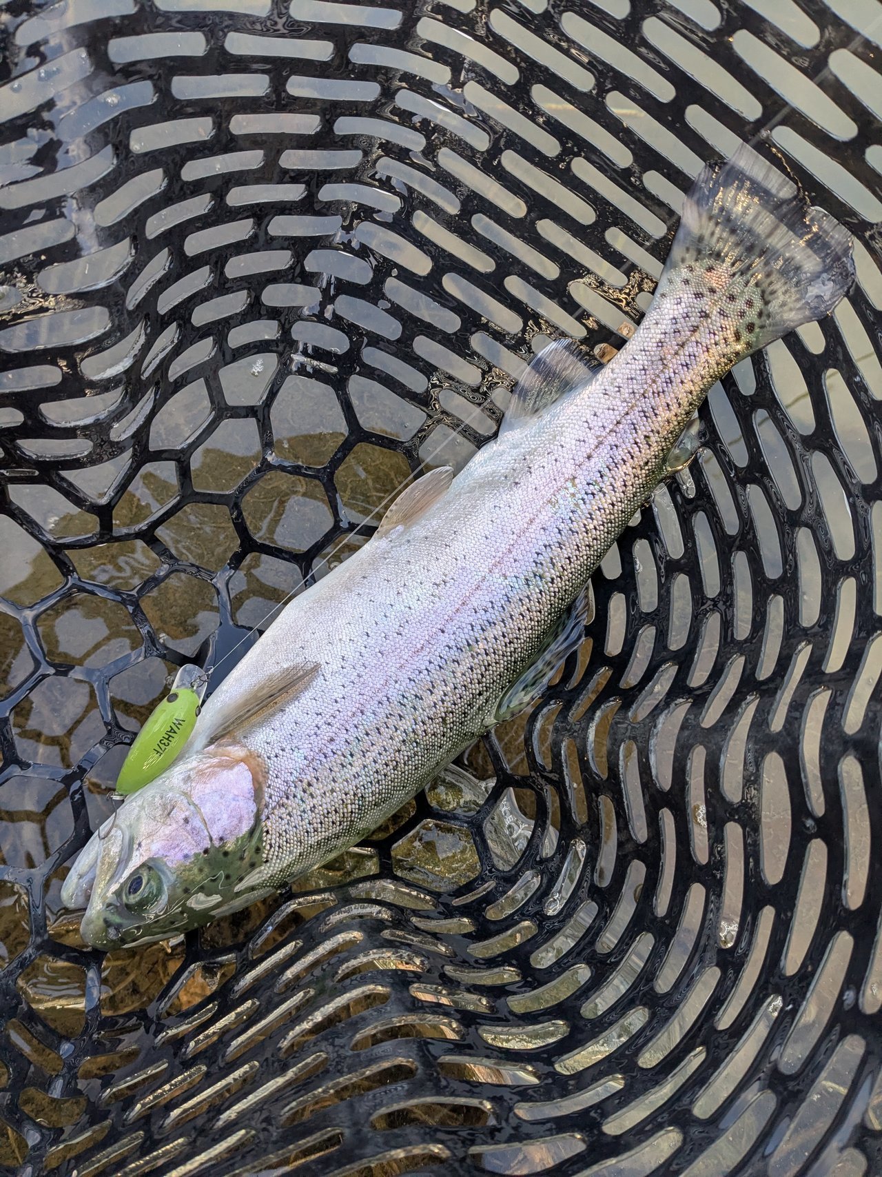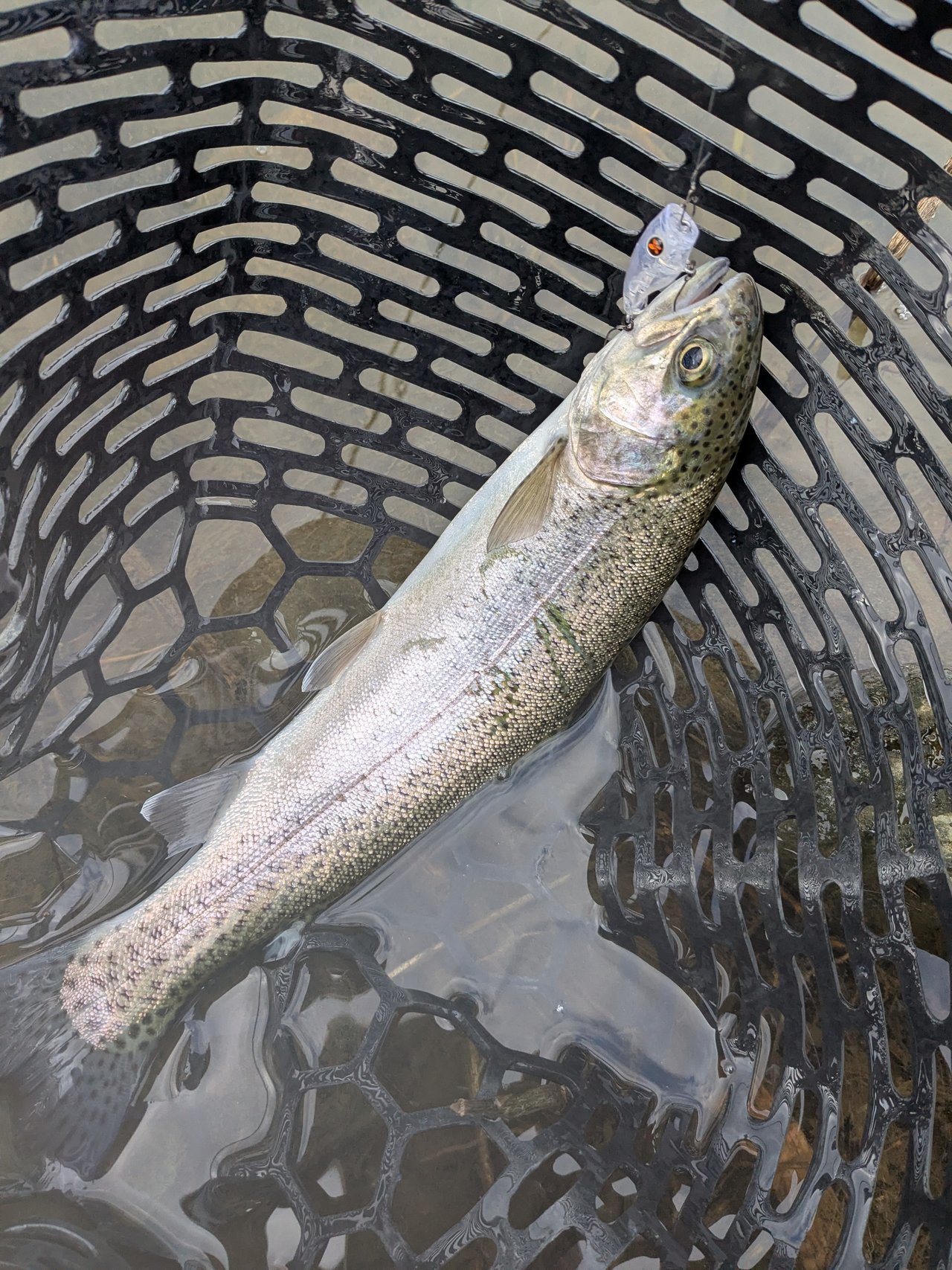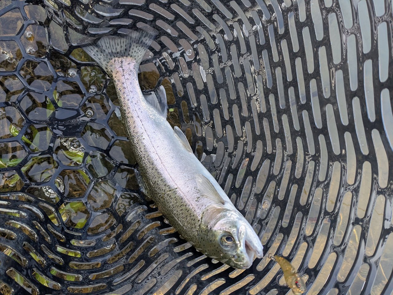 TSURIBORI水戸南へ6時間券でエリアトラウト、朝一から無人の6号池へ。グラビティからスタートするも反応なくキッドダディで何とかファーストフィッシュ。しかしスプーンの巻では続かずダンゴウオで拾い釣り。水面がざわついたらワウやデカミッツ、ポッピンバグ。おとなしくなるとスープーンの巻ではアタリも少なく2WIN等でボトム狙い。また水面がざわつくと・・・の繰り返し。なかなか厳しい展開でしたがトップゲームの時間が繰り返し訪れるので楽しめました!ダンゴウオとボトムバイブ、デカミッツ等のクリア系トップウォーターは必携ですよ!