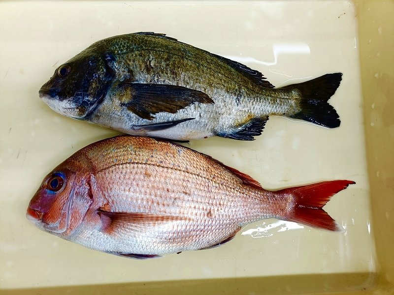 【横須賀うみかぜ公園】横岸壁最新釣果情報です。なんとマダイが出ました!!お客様の加藤さまより釣果のご報告を頂きました。朝から釣り場に向かうとフカセ釣りにてマダイがヒット!最近はクロダイで盛り上がるうみかぜ公園海域ですが、赤い魚も遂に顔を出しました♪その後はアタリが途絶えたのでコマセの消費に観音崎へ移動。すると僅か2投でクロダイも掛かり、見事、赤黒のコンプリートとなりました♪加藤さま、本日は大漁おめでとうございました^^/。さて、横須賀海域では春ののっこみシーズンを迎え、クロダイをメインに様々な魚が狙えます。今回のマダイはフカセ釣りでのヒットでしたがイワシが接岸した今はメタルジグをメインとするルアーでのヒットも望めます。お客様からの情報では既に大サバや夜のタチウオをキャッチされた方も。ゴールデンウィークを前に本格釣りシーズンが開幕となりましたので、皆様も是非お出掛け下さいませ。当店は土日祝日は3時から、平日は7時からの早朝営業も行って居ります。横須賀、三浦地区へお越しの際は是非当店のご利用をお願い申し上げます。