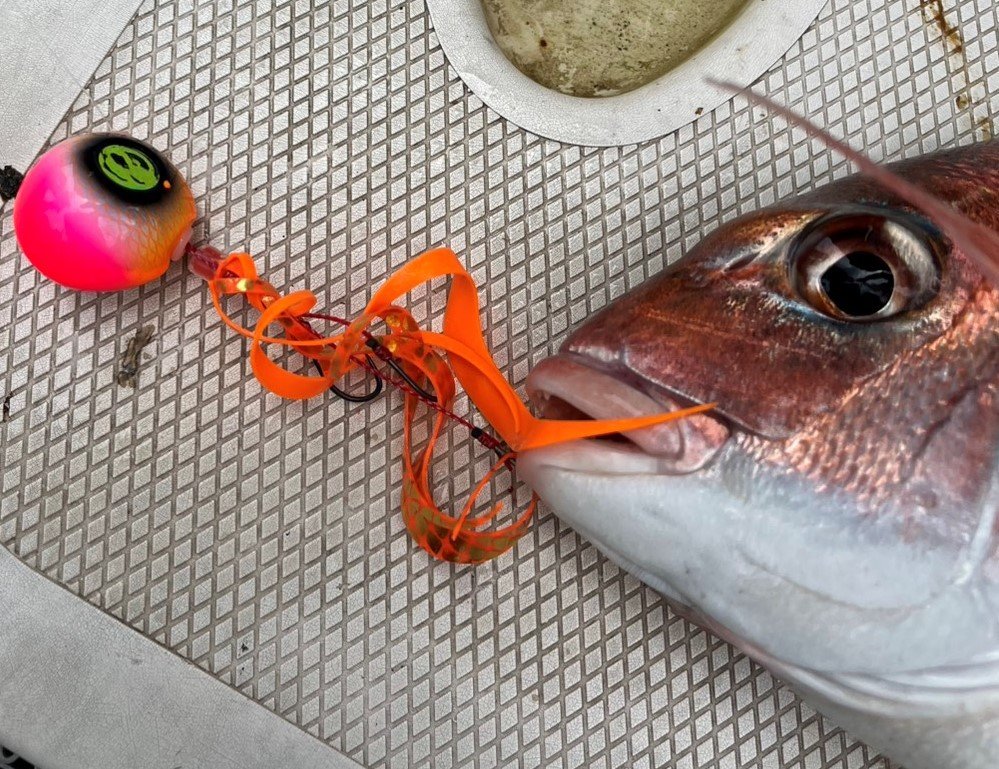 店長菊地です。ハヤブサさん&バリバスさんと上州屋スタッフでタイラバ釣行♪なぶらフィッシングさんに初めてお邪魔してきました!当日は小潮で潮が動かず苦戦気味でしたがそれでも4.8K筆頭に真鯛のヒットありました!今期絶好調の東京湾タイラバの片鱗を感じました。私はショートバイトの連続で泣かされましたがつきみ野店のI店長は3枚ゲットで竿頭!流石です!使用タイラバはハヤブサバルキーカーリーシリーズ、ラインはPEX9レンジマスター船。初めて巻いたラインですがマーキングの見やすさにまずびっくり!アタリもダイレクトに伝わりかなり良いラインでした!強波動系バルキーカーリーは控えめなシルエットながら強波動で真鯛を誘うカーリータイプで渋い状況でも真鯛連発してました!今期好調のタイラバにおすすめです!皆さんもぜひ!