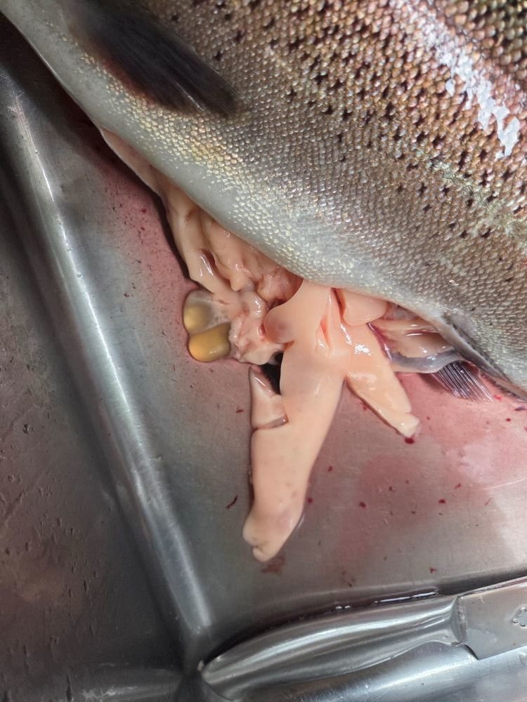 オスの「頂鱒」でした・・・メスならこの時期は、抱卵している魚体が多いので、イクラ(マスコ)が食べれるんですよね//