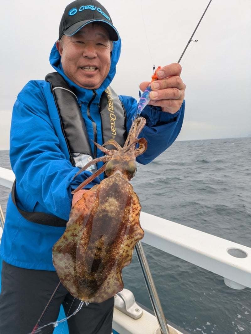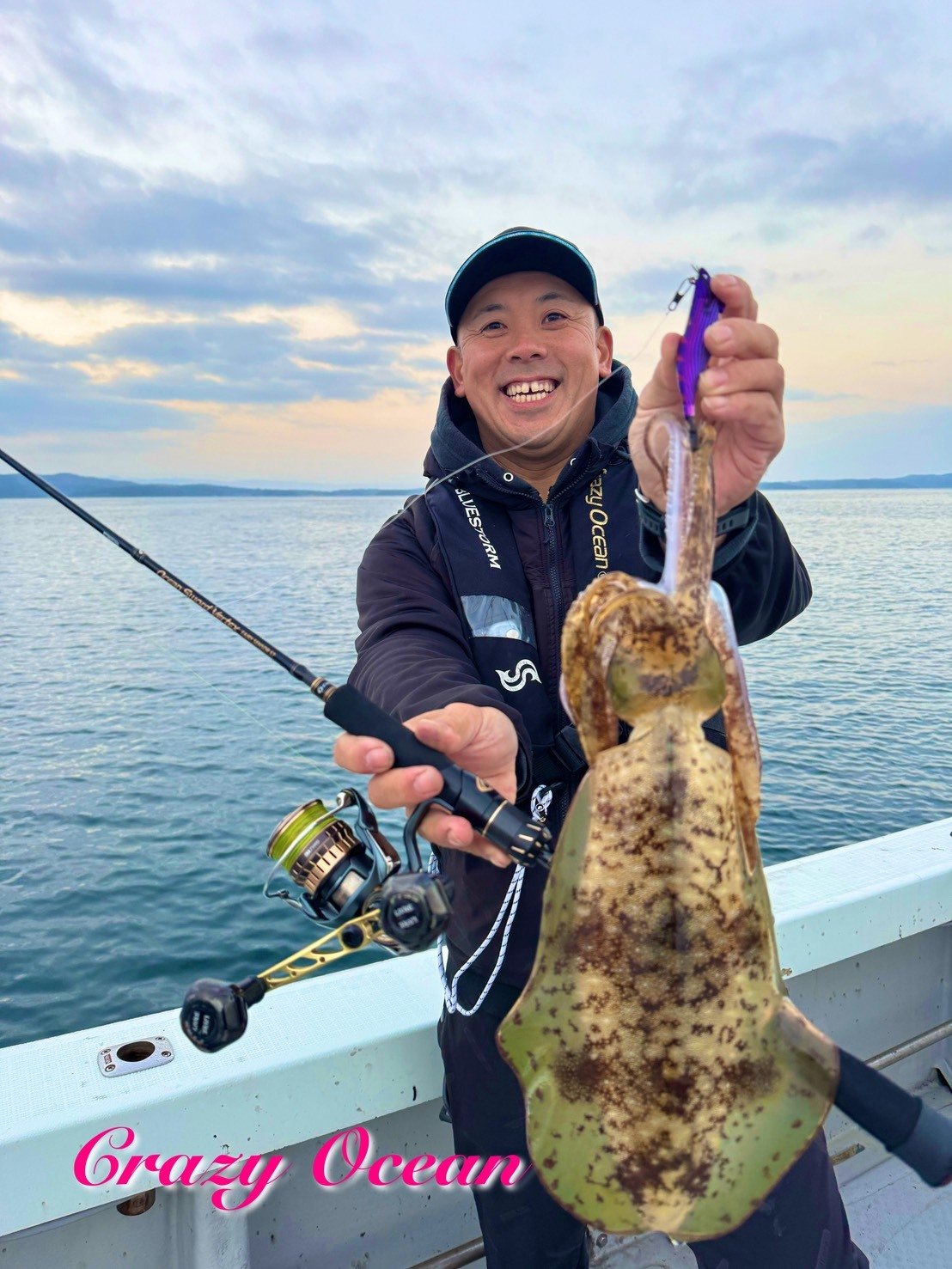 クレイジーオーシャンの太田さんのアドバイスのおかげで2杯追加。合計3杯釣ることができました。当店ではクレイジーオーシャンのエギを取り扱っています。ティップランナーのお求めはぜひ当店で!お客様のご来店をお待ちしております。