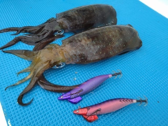 最後の方は、チョット風強くなりすぎてノーマルの30gでは歯が立たず、シンカーを40gまで追加しました。シンカーを追加しても釣れていたのでエギ自体のバランスが良いんだなぁ・・・と思いました。共栄丸さんは親切丁寧に色々教えてくれます。釣行時に不明なことありましたらドンドン聞いてみてくださいね。共栄丸さん、クレージーオーシャンさんご協力ありがとうございました。