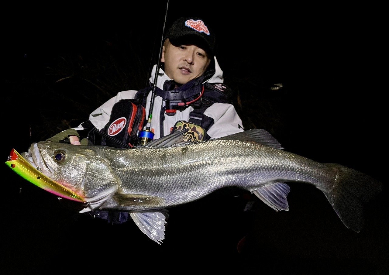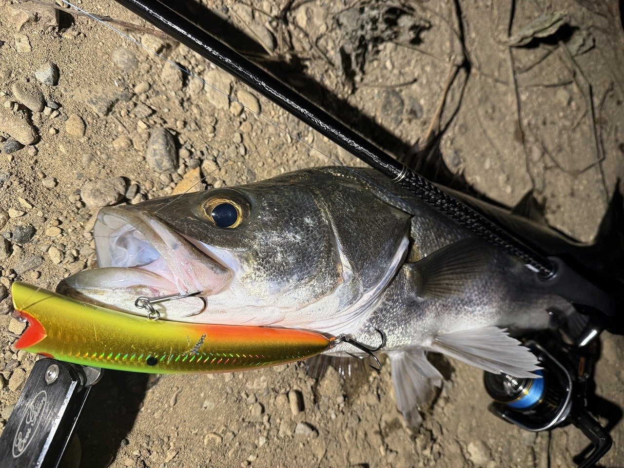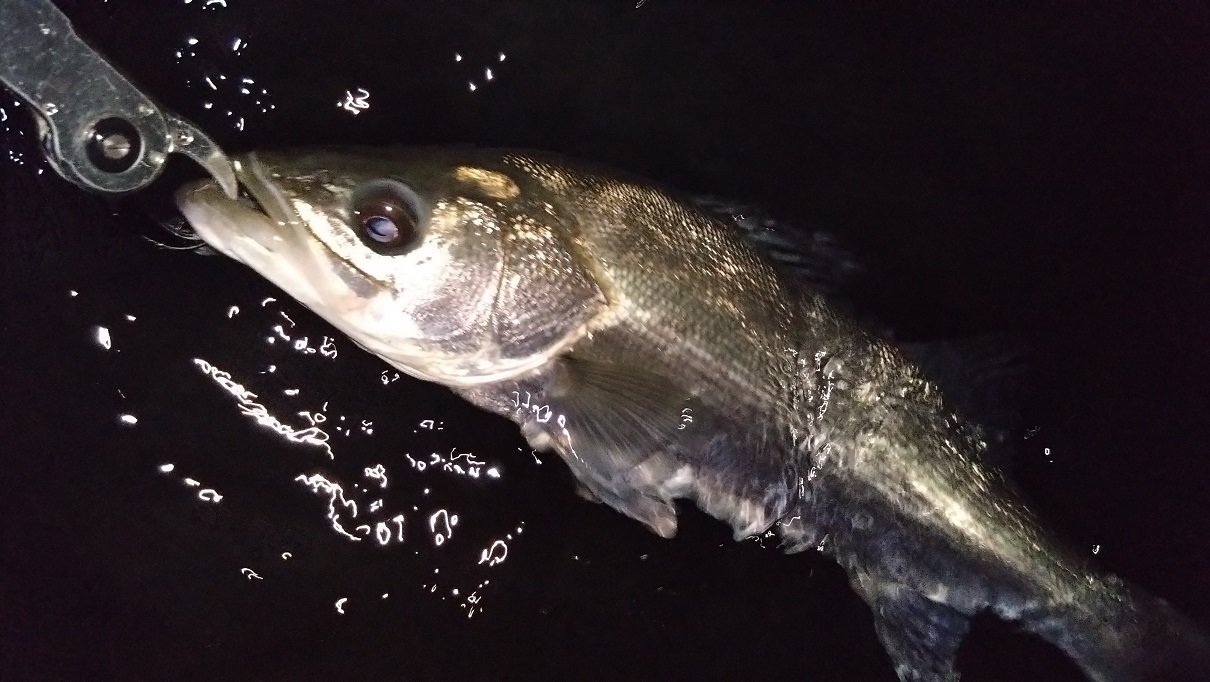 しかし当日は確認できる範囲内では誰も釣れていない中、自分の「フリッパーit」に運良く60㎝ぐらいのシーバスがヒット(^^)