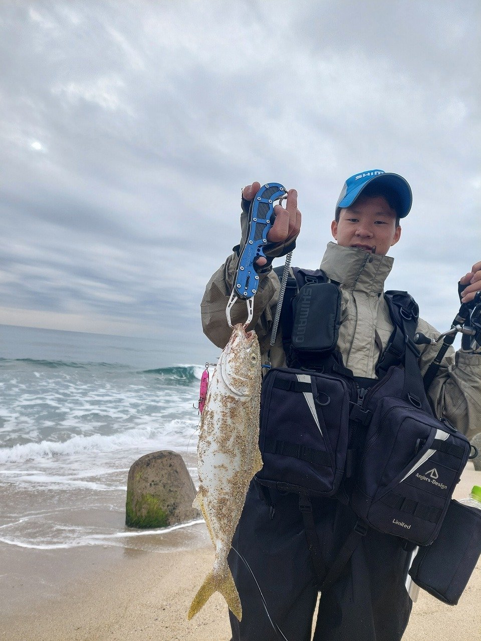■ロッド:10ft ■リール:4000番クラス ■ライン:PE:1号 リーダー:5号 ■ルアー:サリュー常磐誘惑ブルピン