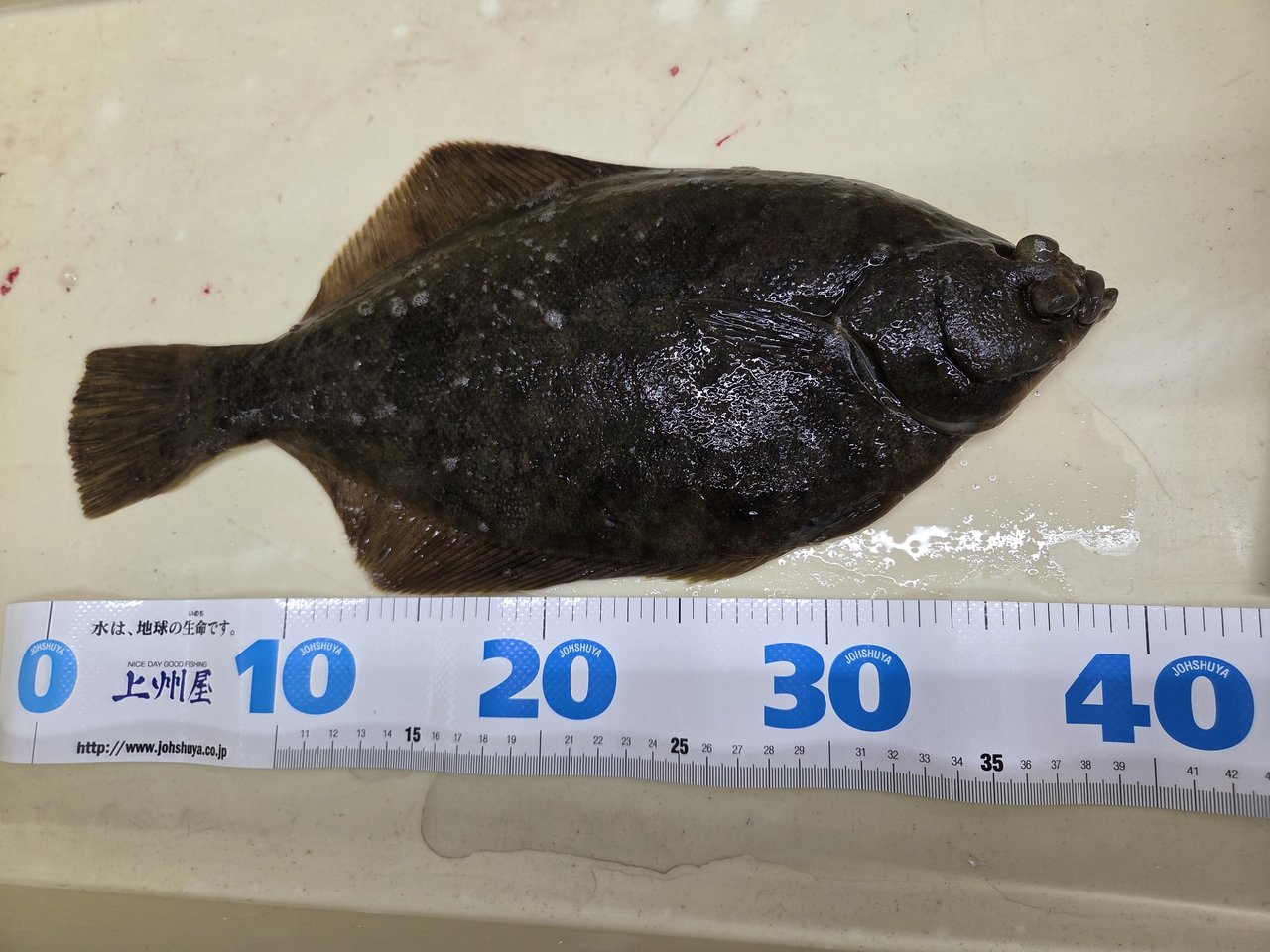 うみかぜ公園横岸壁のカレイ狙いがヒートして来ました!上田様から釣果のお持込みを頂きました。昨日、清掃しにうみかぜへお邪魔した所、すでにシロギス23センチと可愛いカレイをゲットしてたのですが、日暮れに向かって潮が動いて来たのでチャンスタイムです!釣りますよ~!とのお声で別れて来たのですが・・・まさに有言実行!見事40センチ級のカレイを仕留めてのご来店でした^^うみかぜ公園横岸壁、今イチオシのターゲットはカレイです!是非、旬のカレイを狙って見ては如何でしょうか?土日祝日はAM4時よりオープンしてますので是非、お立寄り下さいませ。上田様、またのお持込みを楽しみにしてます。