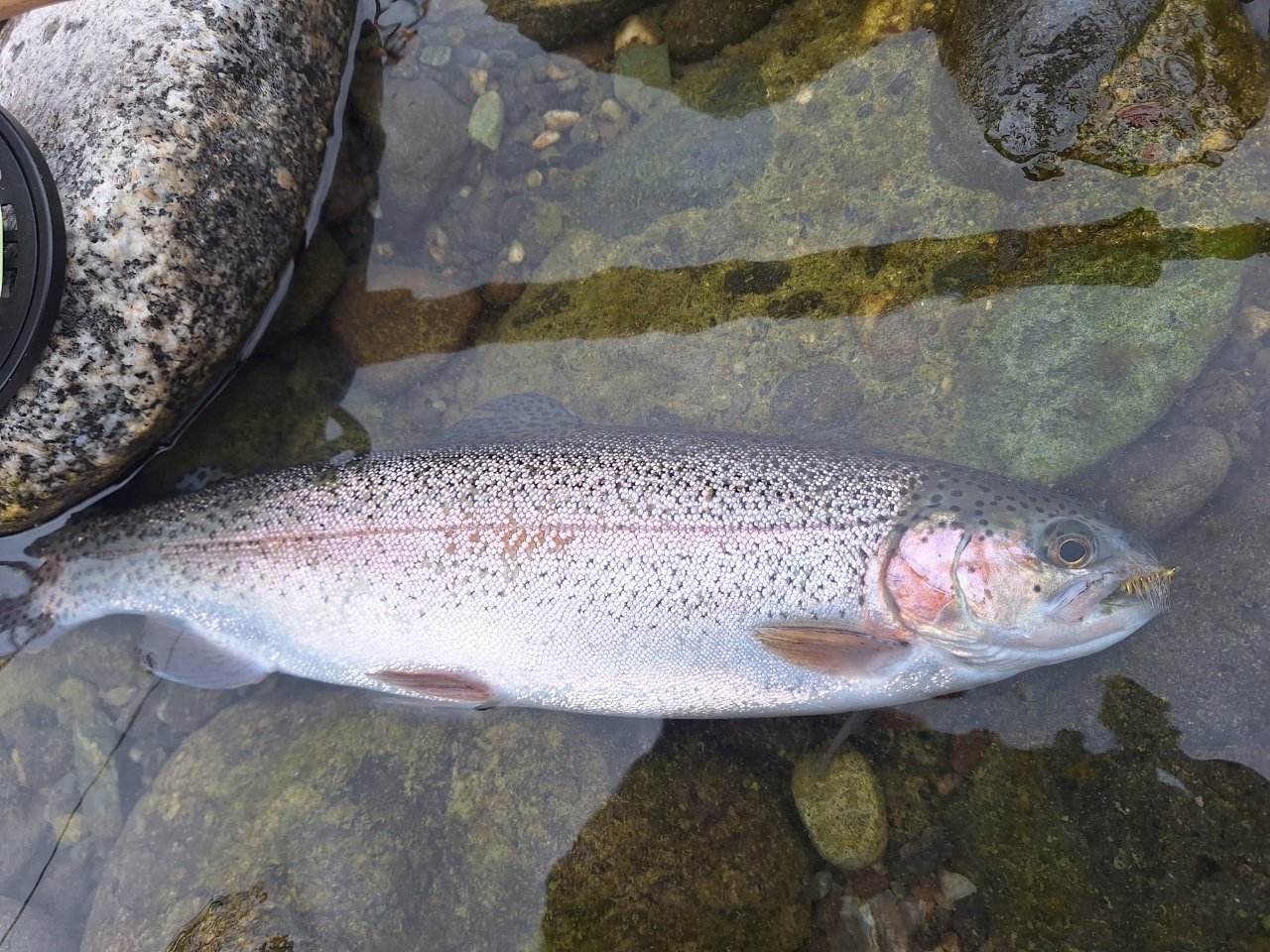 天竜川のルアー・フライ・テンカラ専用区へ行ってきました。バラしてしまいましたが明らかにデカいヤツ(60?70?)もヒット!瀬の中でも元気なニジマスがヒットがあるなどなかなか釣り場の調子は良さそうです。周りにいた方達も結構釣っていました。