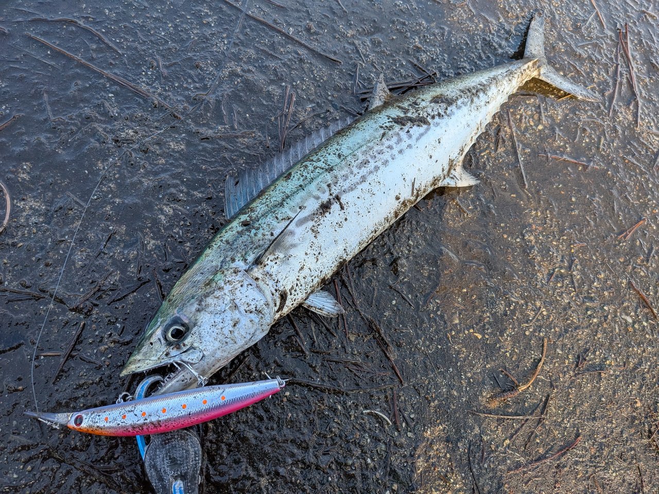 雨後で期待したのですが、お客様はお二方ともサゴシをキャスティングでキャッチ!明田ショートバイト「ギラッ」、若崎はバラシ…。
