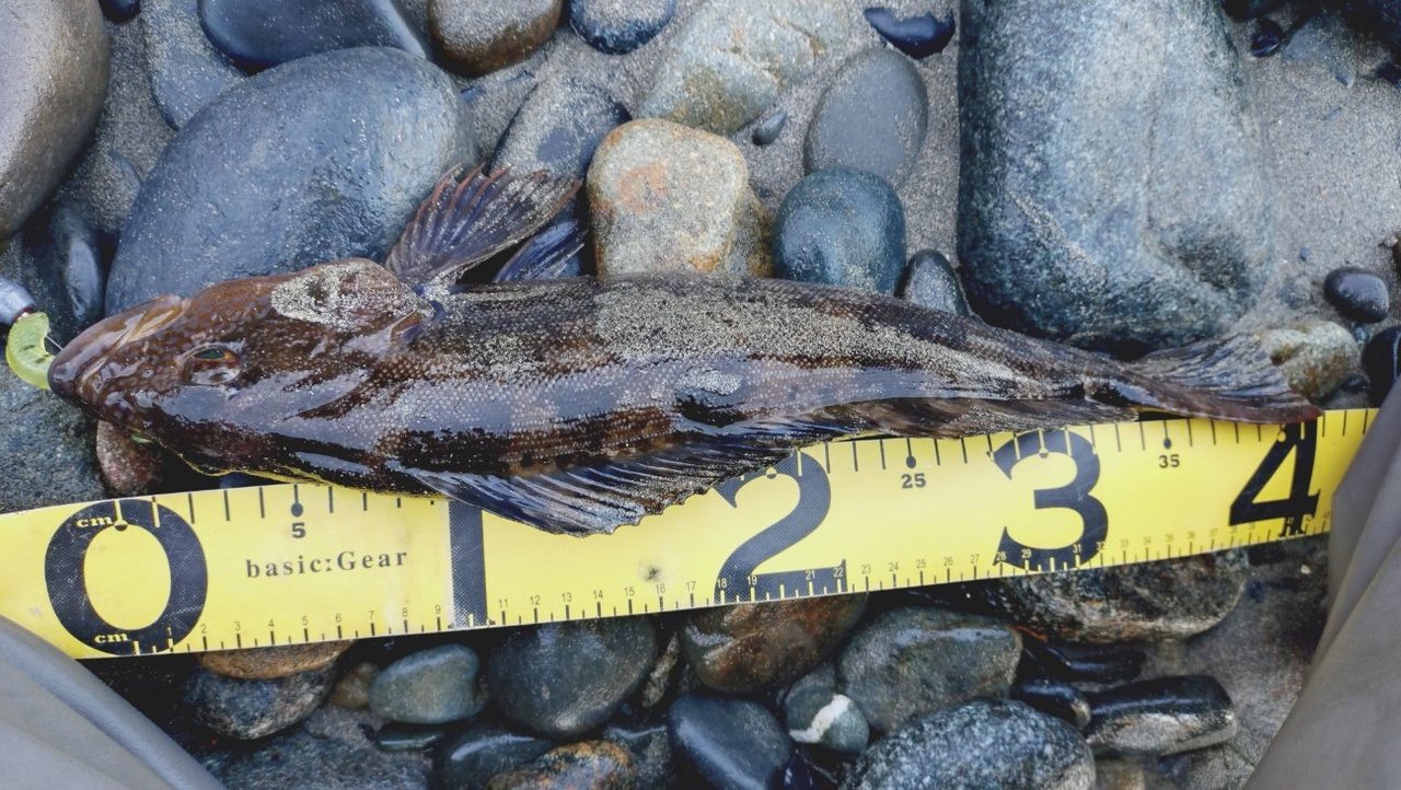 ゴロタ場では沖のブレイクを「ベイトブレスティンカーバグ」で落とし込みヒット!海藻に潜られながら悪戦苦闘・・・苦戦の割にはサイズは小さく30cmキャッチ!