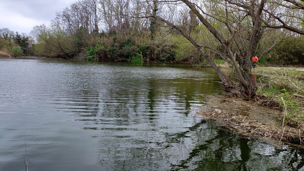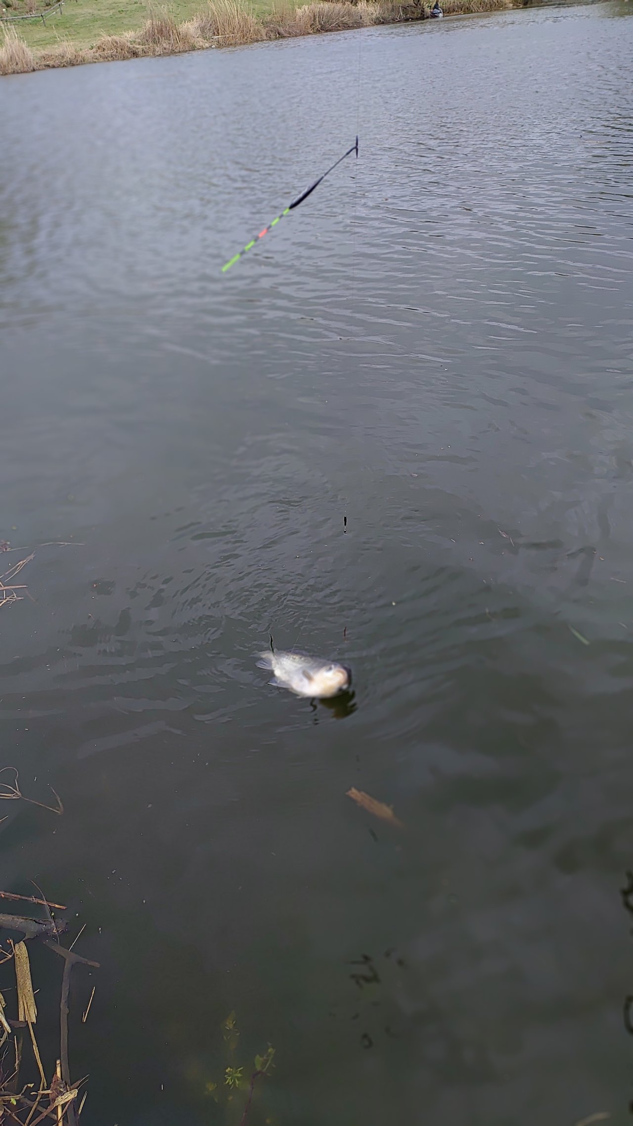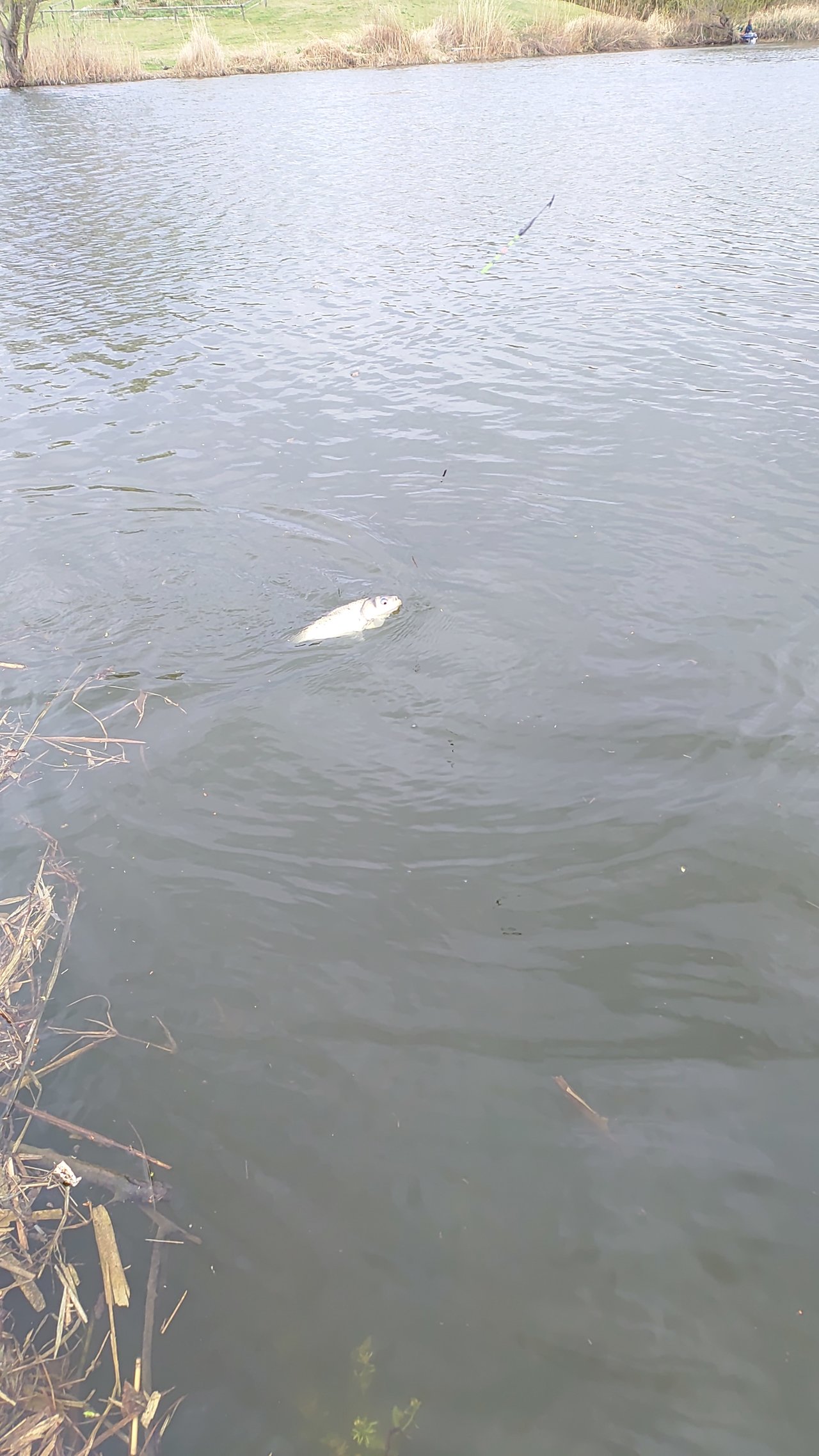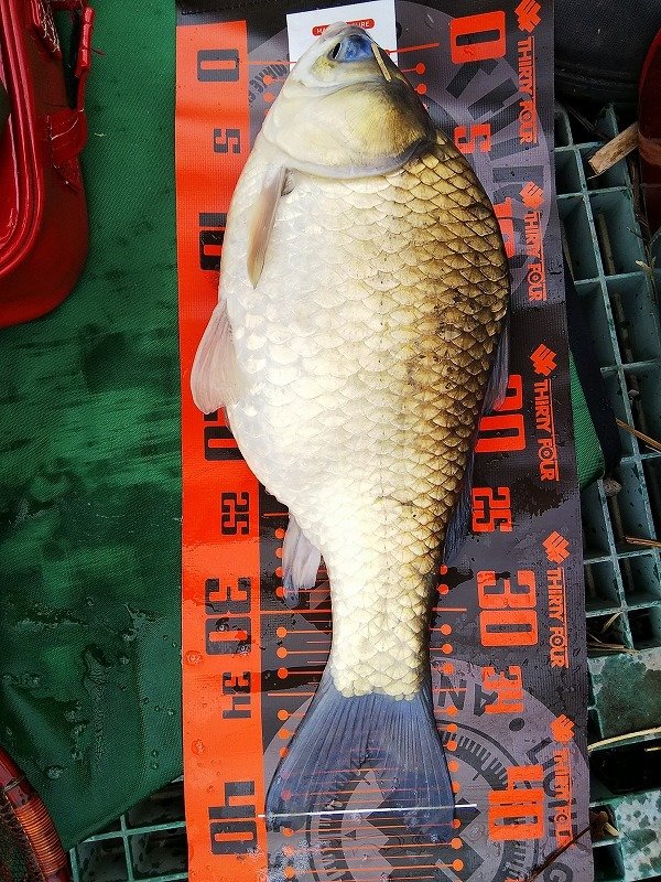 4月7日(火)また近藤沼へ乗っ込みへら釣行!現着は午前8時。当日は空いていて常連さんの話では大きなハタキは終わっていて小休止の状態との事でしたが、所々でかなり小規模ながらハタキも見られるので午前8時半から12尺両グルの底釣りでスタート。開始1時間位で弱いサワリは出ますがアタリに連動せずそのままの状態が続きます。午前11時半頃にようやくアタリに連動しますが大型は釣れず。諦めかけた午前11時45分にゆっくりとしたサワリからしっかり2節落としアワセが決まり糸鳴りと共に沖に走りますがしっかりとためていると沖で浮上ゆっくりと寄せてから2度ほど暴れられましたがなんとか無事取り込み計測すると42cm。諦めかけていただけに嬉しいアガリベラとなりました。今回も使用したスズミの別作水辺12尺パワーのある40オーバーでもしっかりためられて大型を取り込む事が出来てコスパも良くて本当お気に入りの竿となりました。まとまった雨が降ればチャンスはまだまだありそうですね。