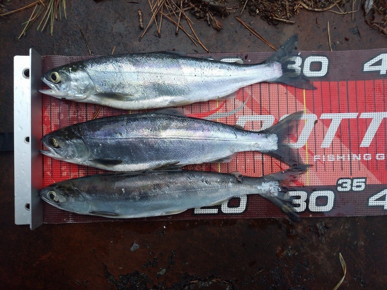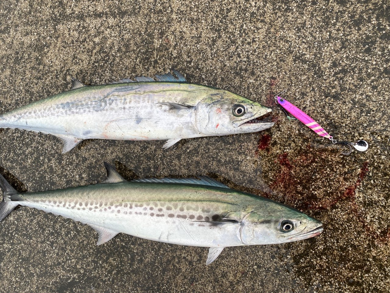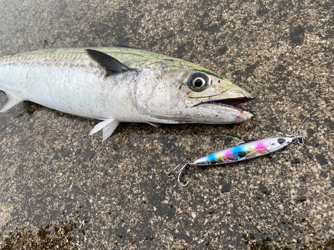 ベイトは6cmくらいの稚鮎と、4cmくらいのウルメみたいな小魚でした。