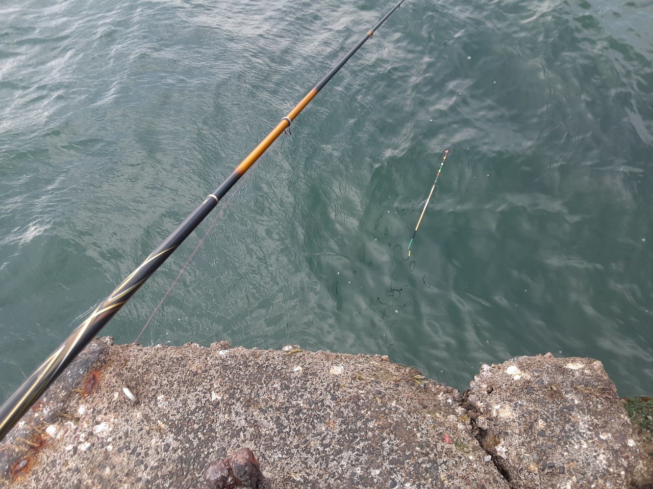 仕掛はハリス4号の12mのテーパーハリス仕掛で接続サルカンBにガン玉で調整。
