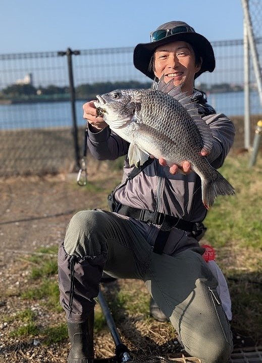 下げ潮も緩くなってきてタイミングでアタリが遠のきます・・・・場所を少し変えてトップでチヌを狙っていたスタッフがクロダイを釣り上げたタイミングで時合が終わり、潮位も下がり手前の底が露出してきた10時頃に終了しました!!