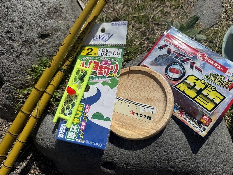 のべ竿・仕掛・エサ・バケツ、有れば観察ケース…