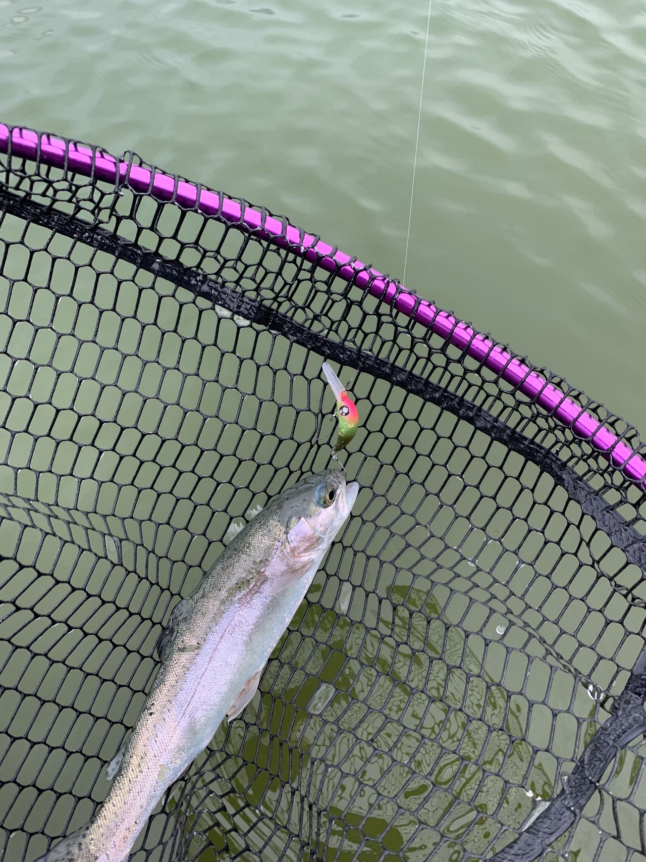 水は完全に濁っていて普段のパターンは効きませんでしたが、魚の反応は悪くありません。