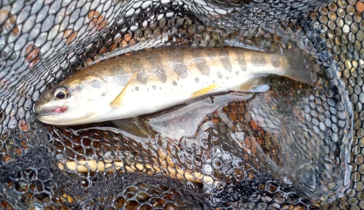 朝まで降っていた雨により増水と濁り状態で厳しい状況でしたが、数時間で濁りは収まり、川幅のある区間では9時頃には釣り可能なほどに回復。ハッチは乏しくライズも散発でしたが、仲間と楽しいひと時を過ごすことができました。