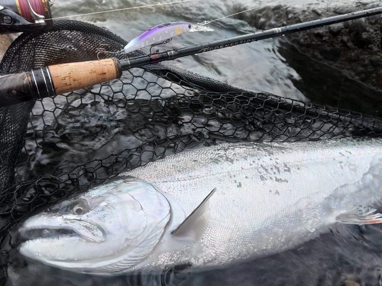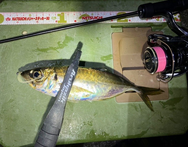 ■タックル:ロッド:SFスタイル1023MH-M ライン:PE1号リーダーフロロ1.1m ヒットルアー:Rサーディン30g(北陸まんぷくレッドヘッド、メタルショットTG32g
