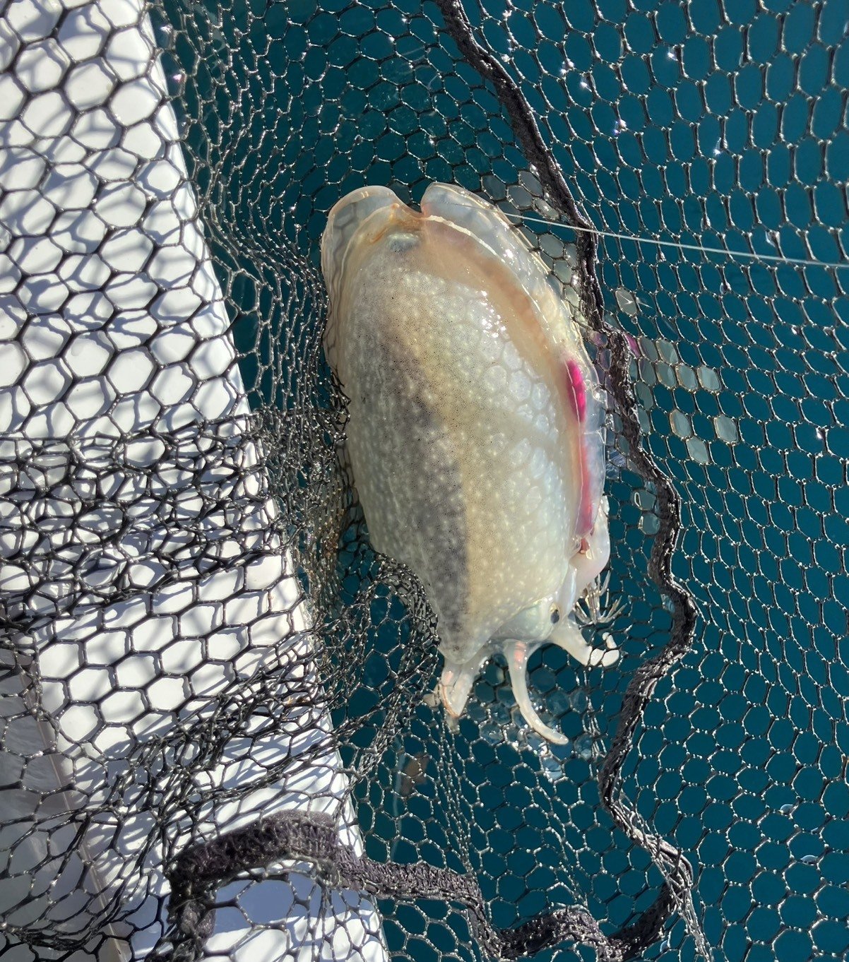 集魚灯を使用し、しばらくしてアタリが出始めました!浮きスッテとメタル、優劣なくどちらでも釣れます!堤防から真下に落とすだけ「船イカメタル」のアクションで、アタリは小さいですが「超ライトイカメタル」風で楽しめました♪